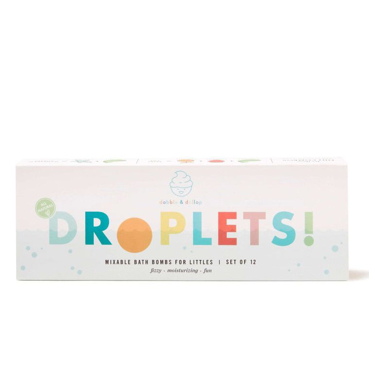 Set includes 12 bath bombs in four fresh-smelling, all-natural scents (3 strawberry, 3 tangerine, 3 honeydew and 3 vanilla). Each Droplet is “kid-sized” at 1 inch, making them perfect for a gentle, moisturizing, sweetly scented bath experience.