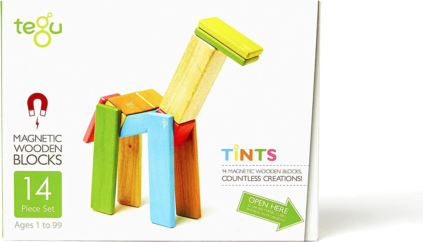 The 14-Piece Set is the perfect introduction to our Magnetic Wooden Block collection. Five unique shapes “click” together into endless possibilities. More about Tegu: - Brilliantly simple and premium heirloom-quality toy that will last for generations. - Curiously attractive and perfect for those seeking toys supporting open-ended and unscripted play. - Naturally safe: no lead, no plastic, non-toxic, water-based lacquer finish, no small parts.