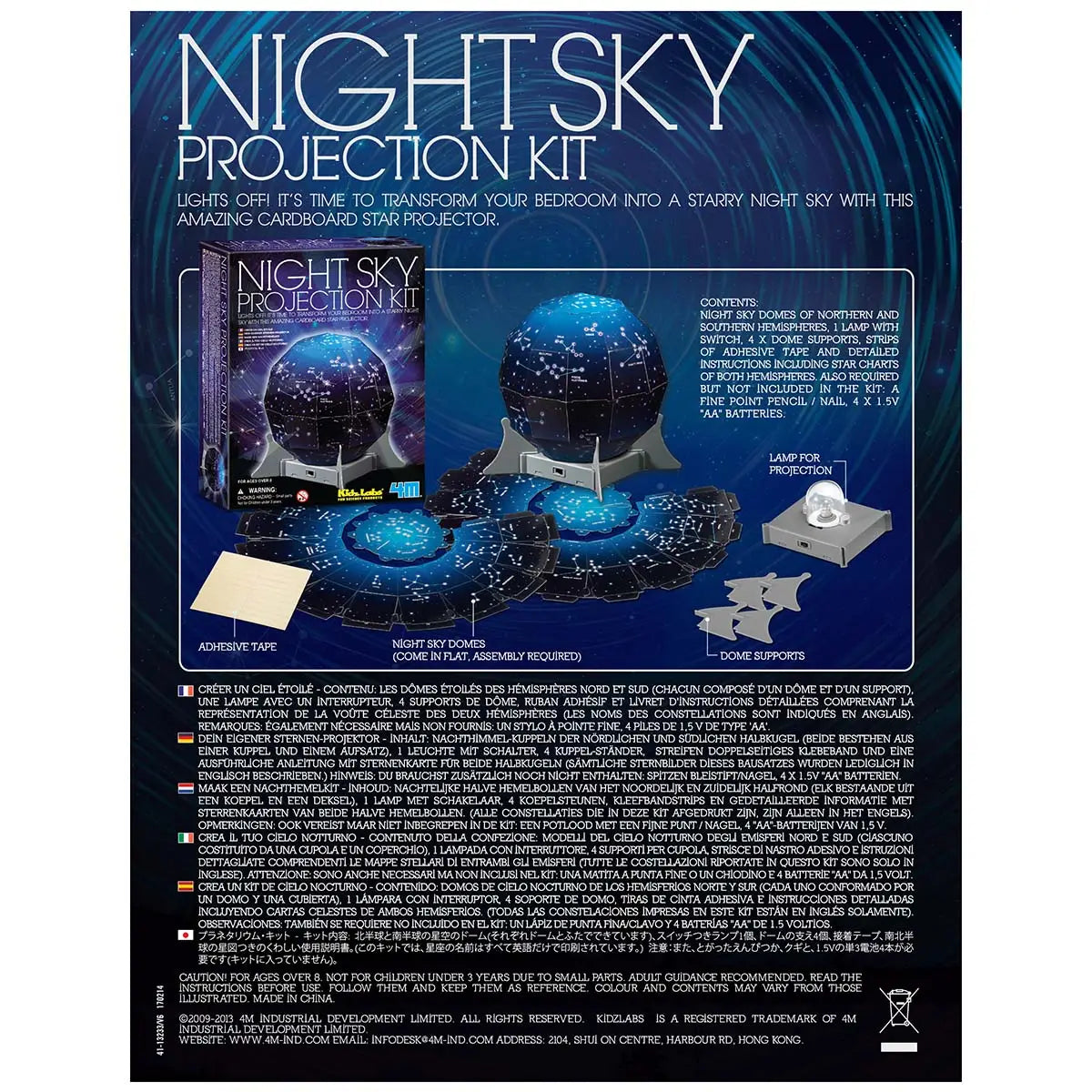 - Four cardboard panels fold and mold around the small light device. Switch it on and projections of both the northern and southern hemispheres shine brightly on the walls for hours of observation and study.