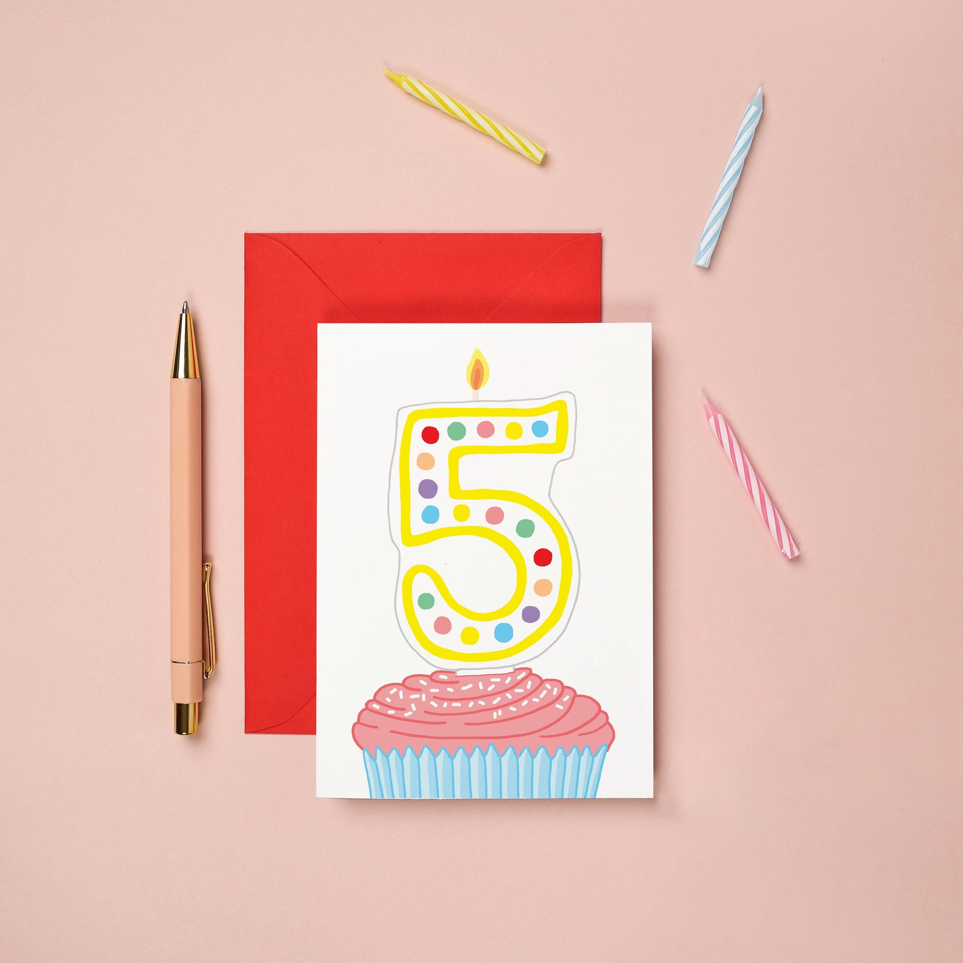 For a fantastic five-year-old! Celebrate with this charming 5th birthday card that’s packed with birthday cheer. Featuring a delightful hand-drawn illustration of a strawberry cupcake, topped with a bold number 5 candle, this card is sure to make their day special. Gender neutral and blank inside for a personal message, it’s a perfect choice for any little one turning five.