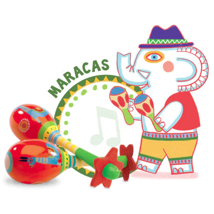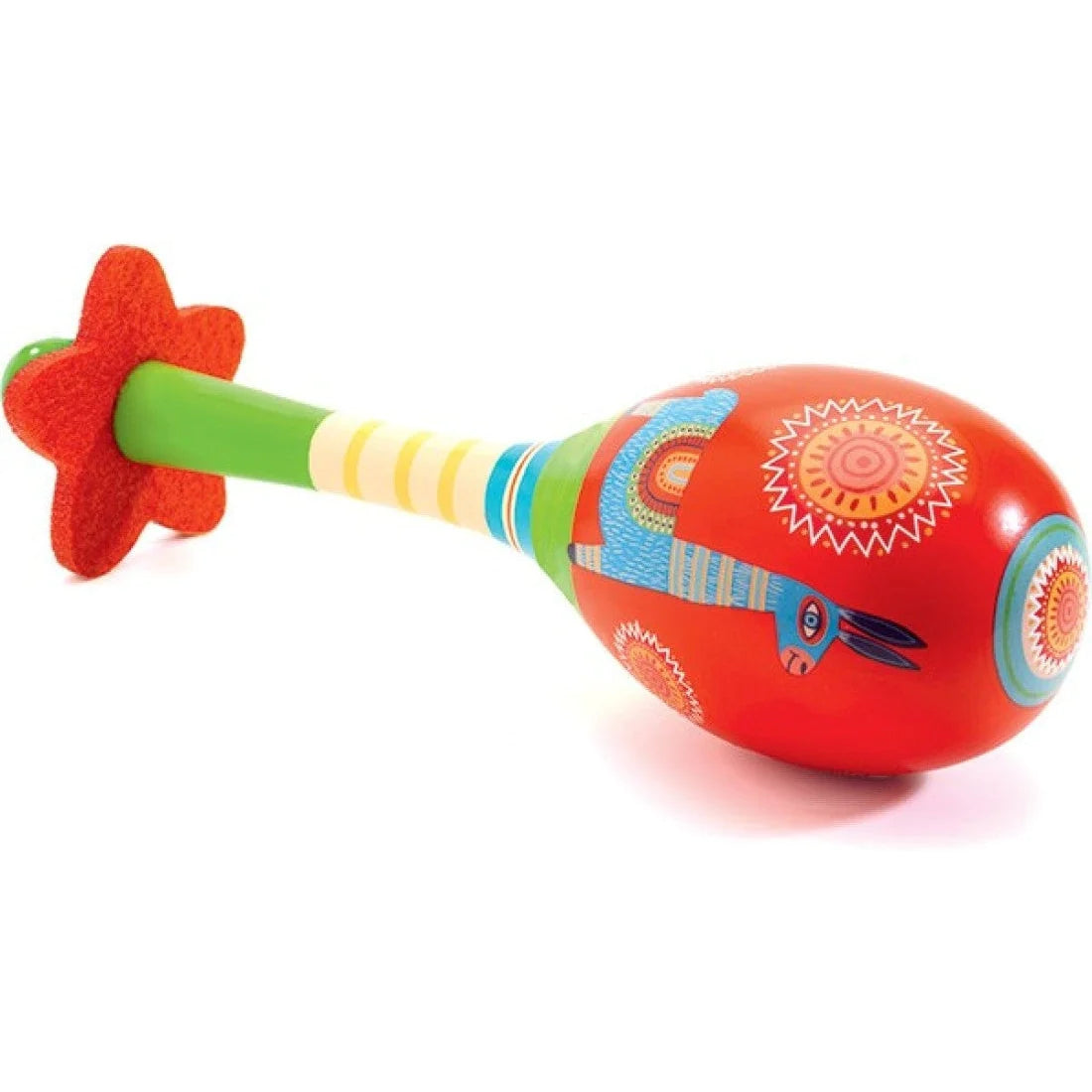 Beautifully made from wood and fabric, this children's maraca features delightful artwork by renowned French artist Magali Attiogbe. Made by French brand Djeco, known for its high-quality, non-toxic products, it's great for developing motor skills, coordination, listening and rhythm. Perfectly shaped for small hands to keep time with the beat, it will delight young kiddos as they make their first explorations into the world of music.