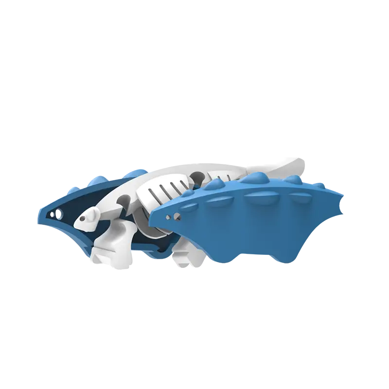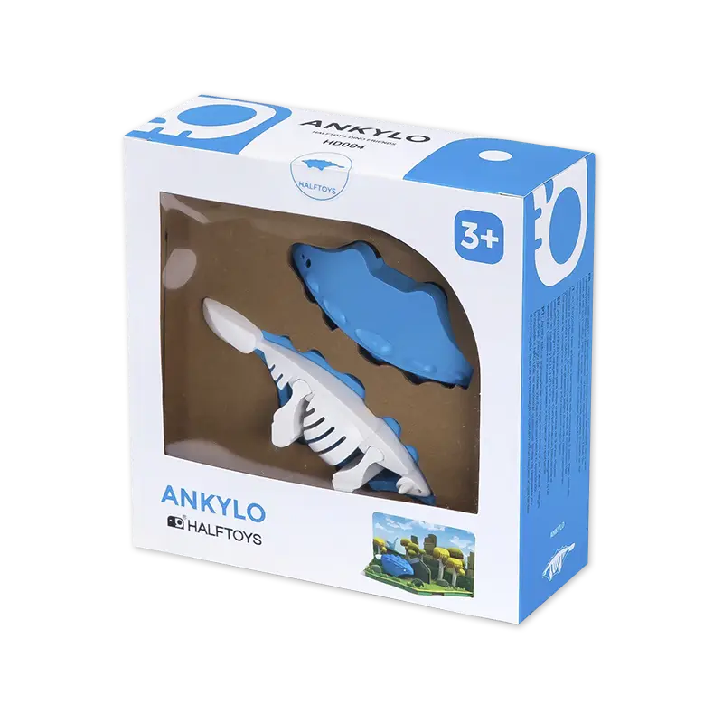 As a HALFTOY, you can open its magnetic shell to find the skeleton, a 4-piece bone puzzle. Each animal figure comes with a diorama that can be linked to other dioramas in the HALF DINO collection.