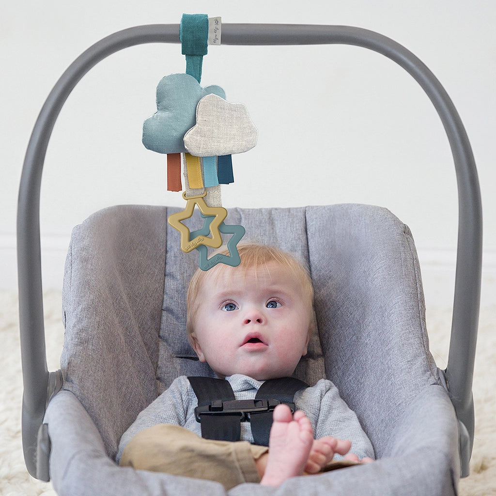 Our Cloud Travel Toy is the playful pick-me-up your babe can’t resist! Sensory design in mind, this toy is crafted with soft natural cotton & features a jingle ball inside to envelop baby with its gentle sound. Easily fasten it onto a car seat, stroller, or activity gym for adventures ahead!