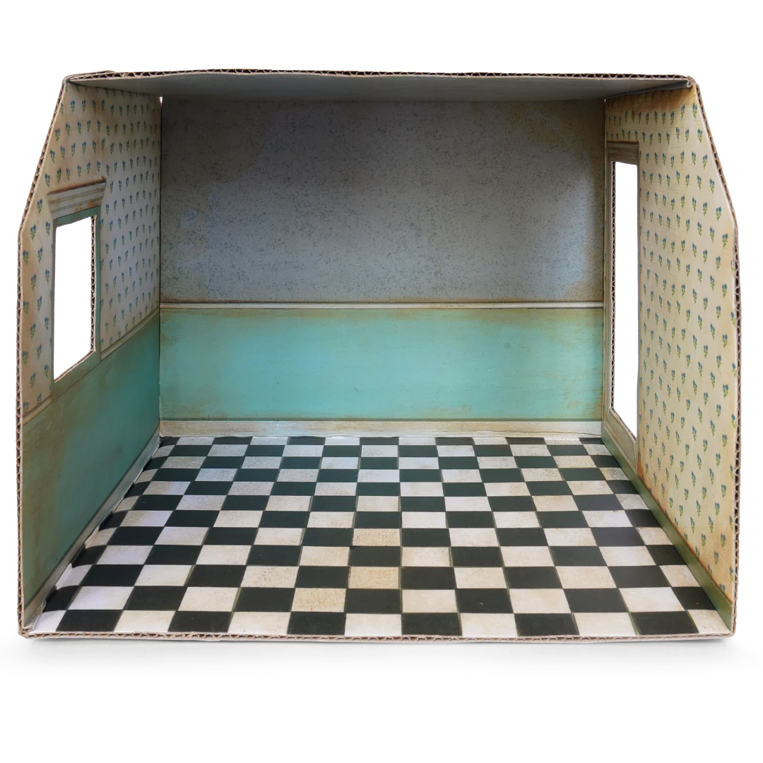 This lovely miniature room is made of cardboard and printed on all sides with the characteristic wallpapers and floors of The Mouse Mansion. The box is easy to assemble thanks to the handy flaps with double-sided tape.