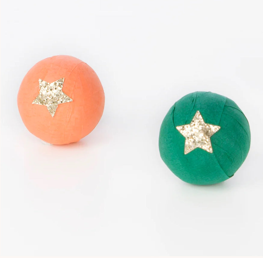 These surprise balls, in gorgeous festive colors with gold ECO glitter star stickers, will look amazing on your Christmas party table. They contain everything your guests need to look and feel festive fantastic - a paper party hat, a joke and gifts.
