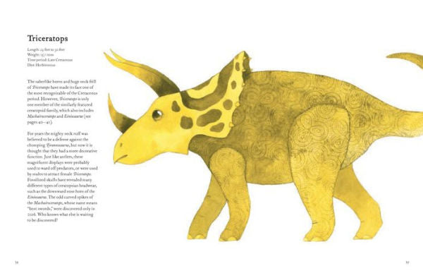 Did you know that Argentinosaurus was as heavy as a herd of elephants? That Mosasaurus was three times the length of a great white shark? That Microraptor was the size of a pigeon but with four wings? This magnificent book imagines dinosaurs as they might well have been, based on recent findings—feathered, finned, and full of color. Gorgeous watercolors accompany surprising, little-known, and fun-to-tell facts about dinosaur behavior, habits, and appearance, bringing these prehistoric creatures to life in a new way. This fascinating book will delight dinosaur fans, young and old.
