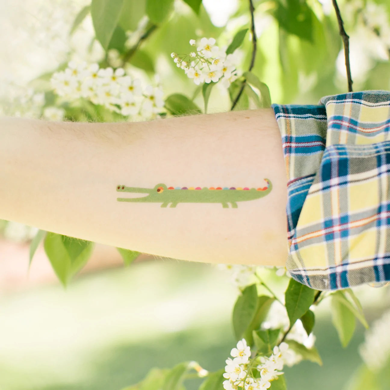 Tattly tattoos are safe and non-toxic, lasting on average 2-4 days. We suggest placing on oil-free areas where skin does not stretch and keep them clean!
