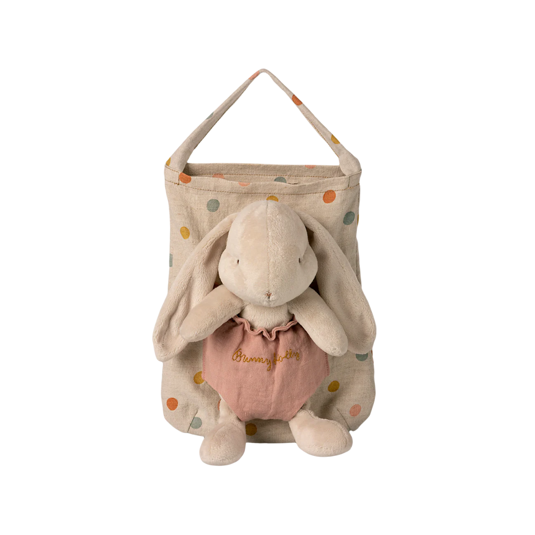 Bunny Holly is a must-have for all small cuddlers. Her plush design is so soft, and she fits perfectly in your arms. Bunny Holly comes with a sweet polka dot bag with a pocket on it, so you can carry your friend along.