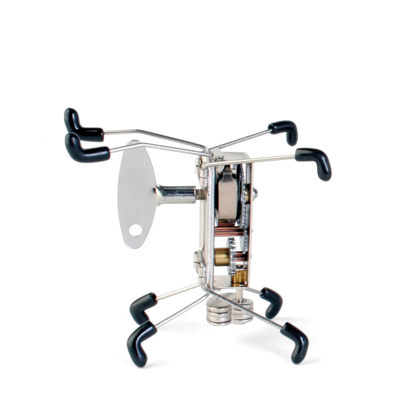 Cosmojetz is the last, and final item from the series of five products using the gearbox with a single spinning off-center weight. The idea here is to have an absolutely out of control creature, short circuited, disoriented, but, having a lot of fun in the process. Since the person who created Cosmojetz has severe ADD, perhaps we’re dealing with a self-portrait situation here. Cosmojetz is a little hard to wind-up for mechanical/physiological reasons, but it is worth the effort once you see it catapulting itself weightlessly, and fearlessly across your table.