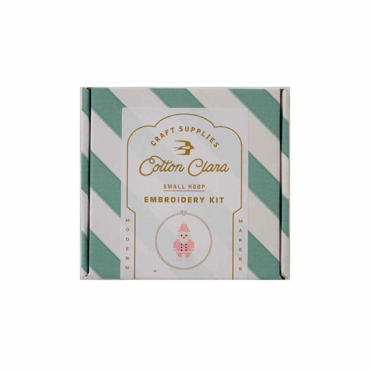 The hoop measures approximately 9cm. The kit is packaged in our distinctive striped box making it perfect for gifting.