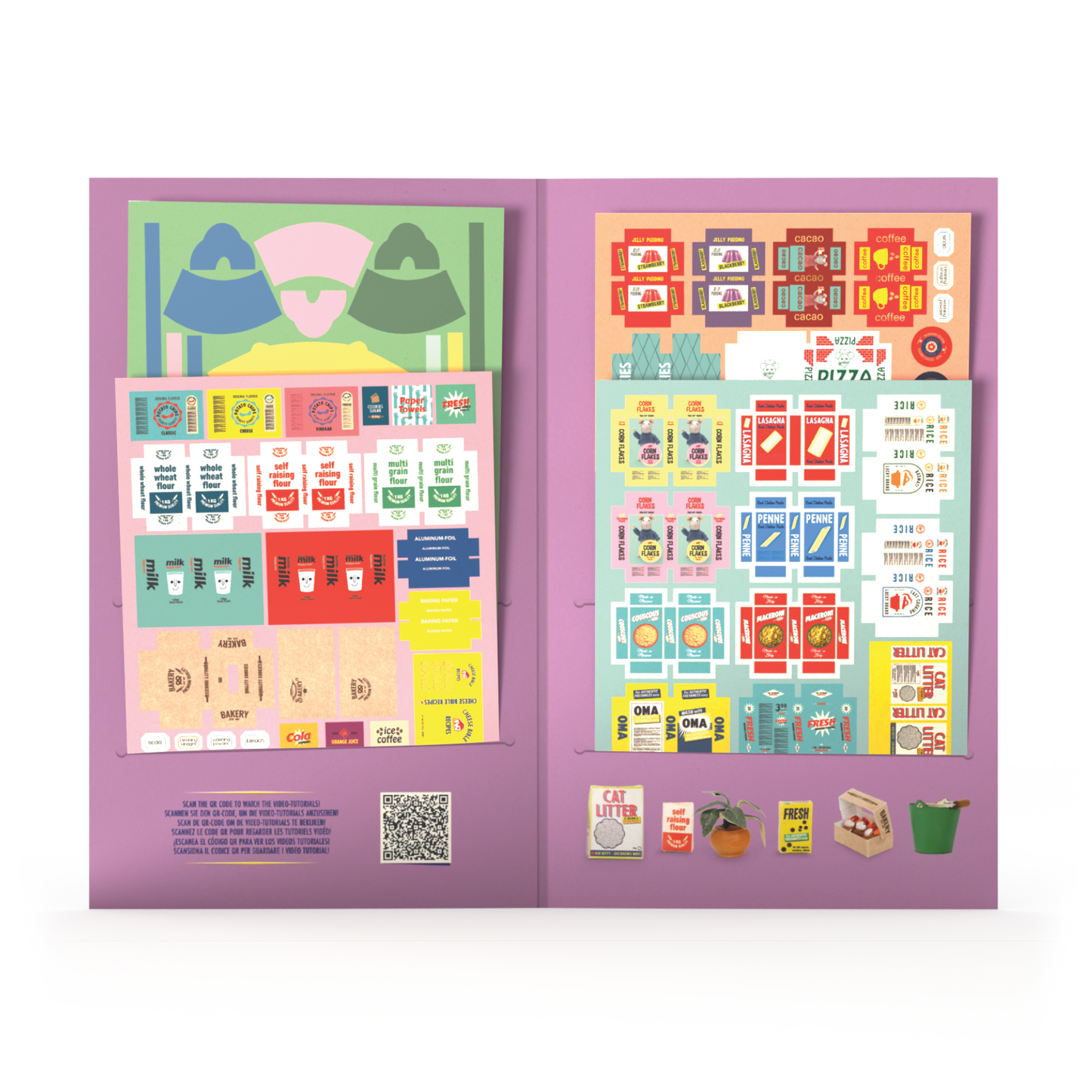 With these beautifully designed die-cuts, you can easily make them yourself. The set includes everything you need to decorate a kitchen including food boxes, cartons, cleaning items and more!