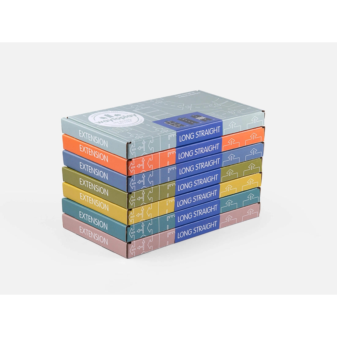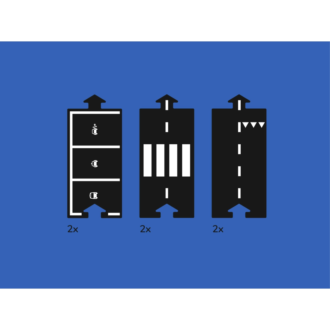 This new extension set contains six straight road parts : two parking spot pieces with icons, two pedestrian crossings, and two shark teeth pieces. The waytoplay road parts are printed on both sides. Put them between or beside your waytoplay roads for even more fun. With this set, you'll expand your waytoplay lay-out with six road straight parts.
