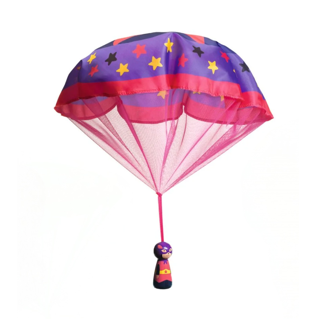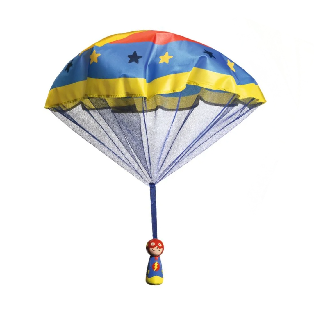 The Flying Heroes are little wooden hand-throwing parachutists: keep them in the air as long as possible!