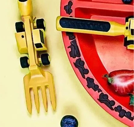 The forklift fork is great for all construction lovers! These utensils help children develop fine motor skills and independence. The textured handles make it easy for small hands to grip the utensils. Made and packaged in the USA. Dishwasher safe. Food safety tested materials, CPSIA compliant; BPA, Phthalate, PVC, lead, and paint-free.