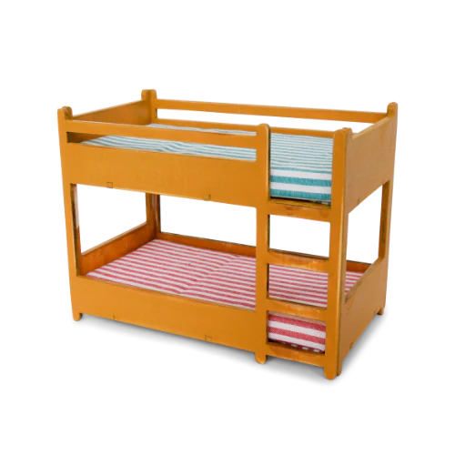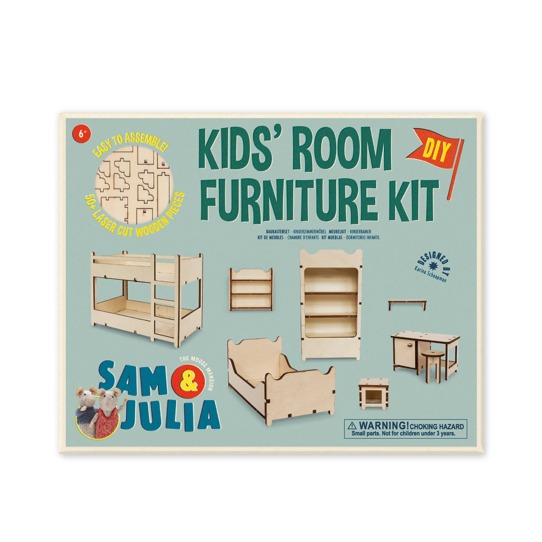 The pre-cut wooden pieces can be easily assembled with simple instructions and are 1:12 scale. Based on the Mouse Mansion book series by Karina Schaapman, the kit lets you bring the charming world of Sam and Julia to life. This furniture kit includes a miniature bunkbed, a single bed, nightstand, a desk, a stool, bookshelves, and a cabinet. Room, paint, glue, and accessories are sold separately.