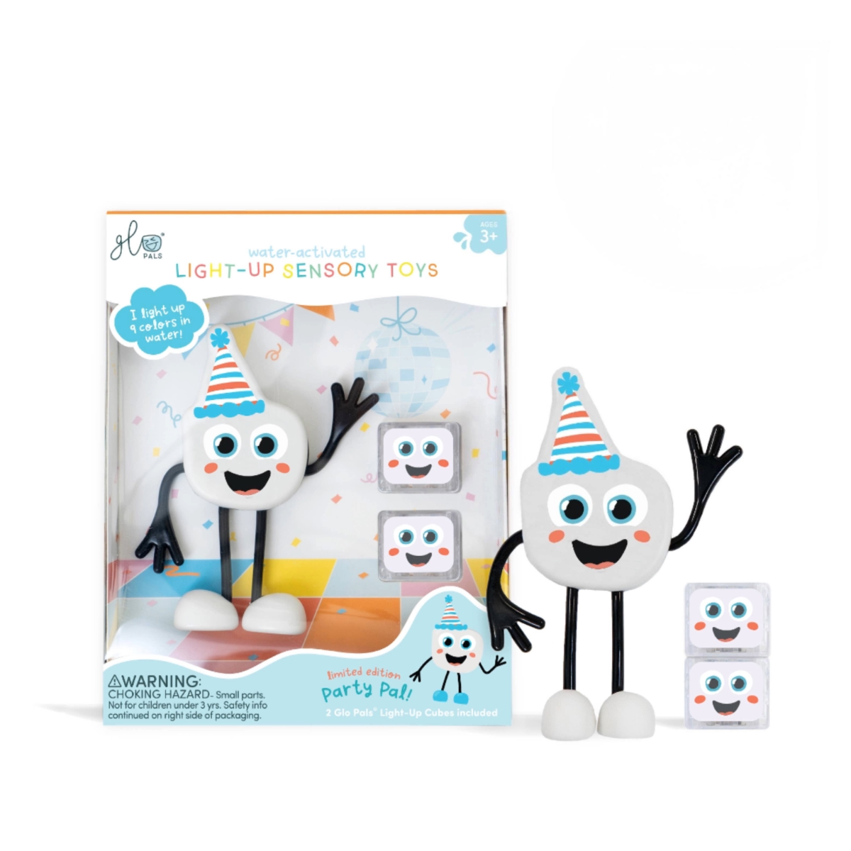 - Party Pal comes with 2 Glo Pals color-changing light-up cubes included in the box!