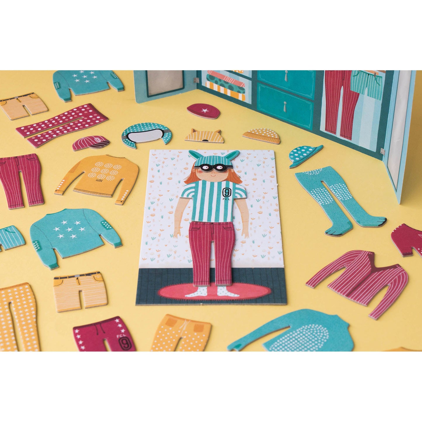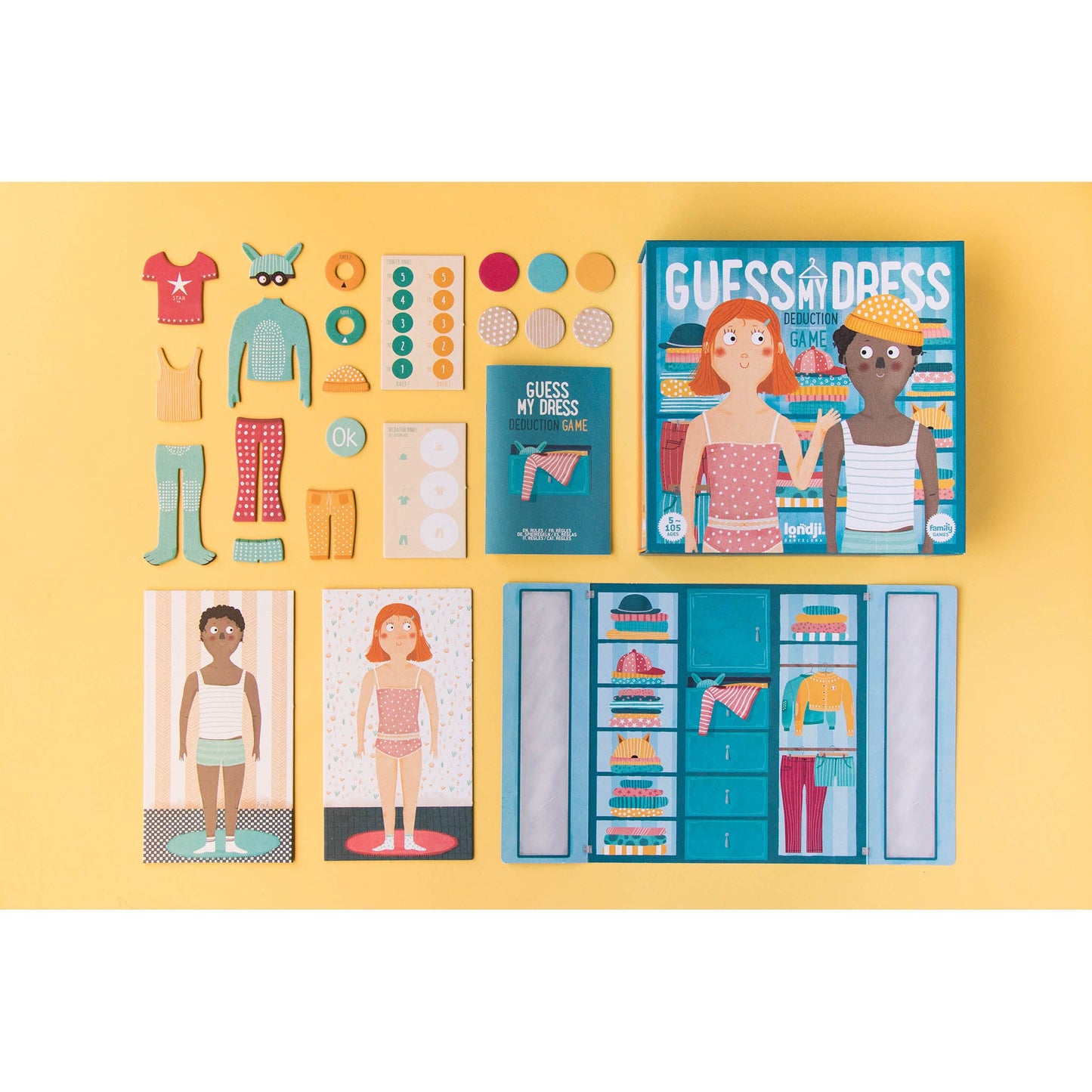 Colorful sweaters, polka-dot pants, hats with bunny ears...what else is in this wacky closet? Dress your character as creatively as you can and hide them behind the dressing room. Take turns with your opponent by asking various questions about their character's outfit to try to guess how they are dressed. Whoever guesses their opponent's entire outfit correctly first wins!