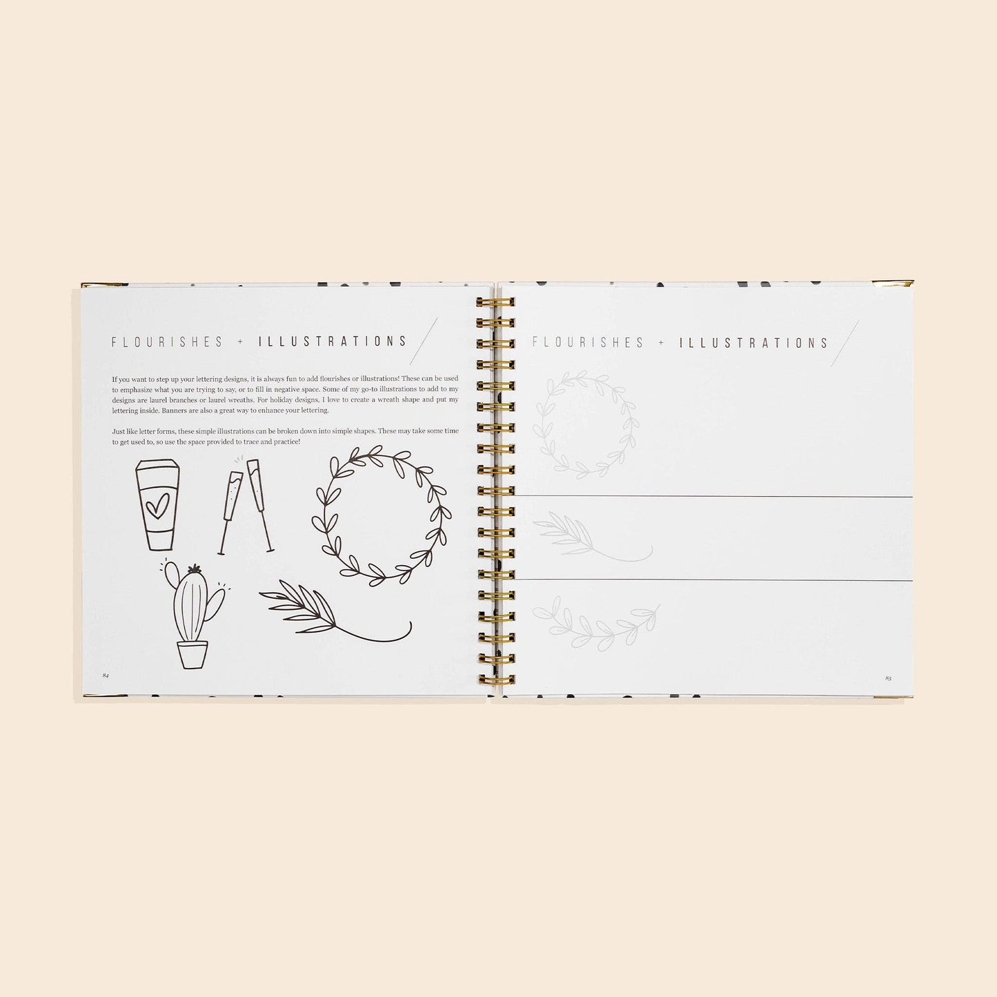 Through 9 projects, Sarah shows you all of the basics for learning how to letter like a pro. This spiral journal is the perfect drawing pad. Lay your book flat on a table to flawlessly complete all of the practice pages and drills enclosed.