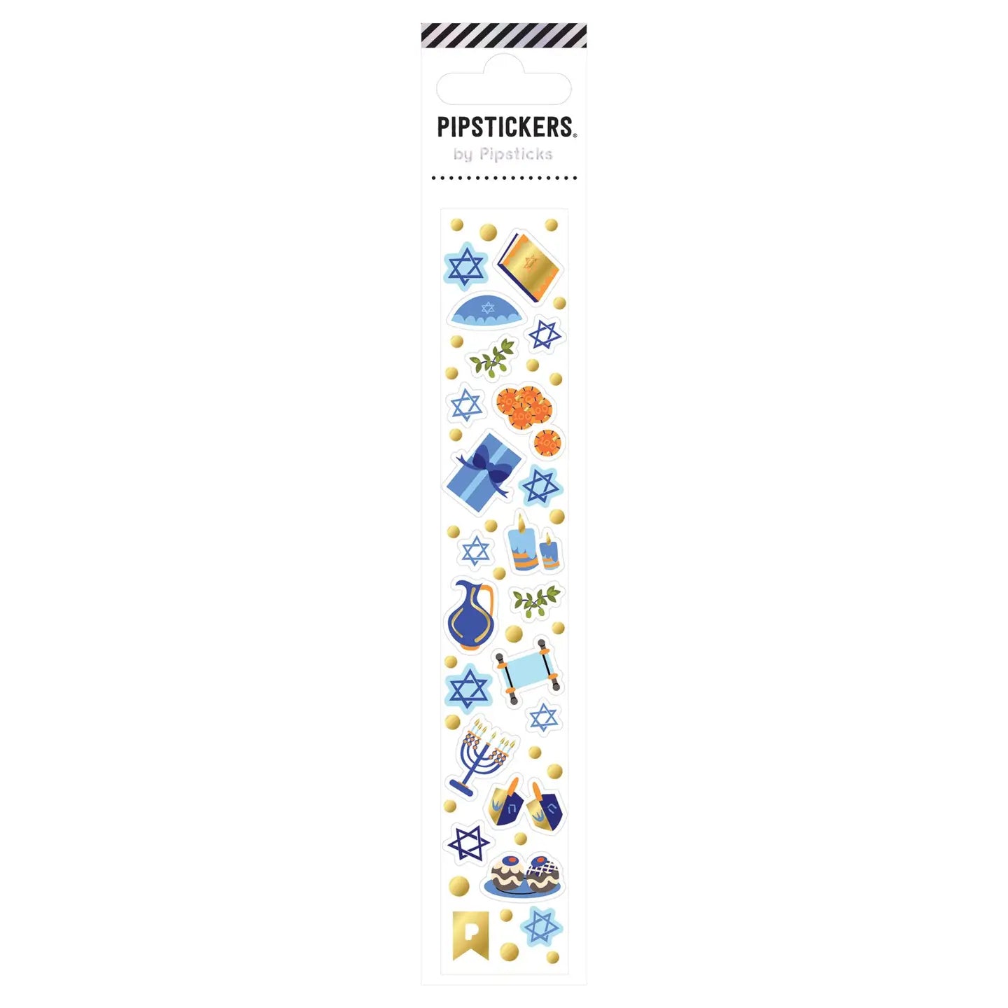 PipStickers are the PERFECT gift for the sticker lover in your life - even if it's you! These unique PVC designs with orange foil accents come on a clear backing and cannot be found anywhere else. Includes one 1'' x 6'' sheet of Hanukkah Minis PipStickers and includes the Pipsticks manifesto.