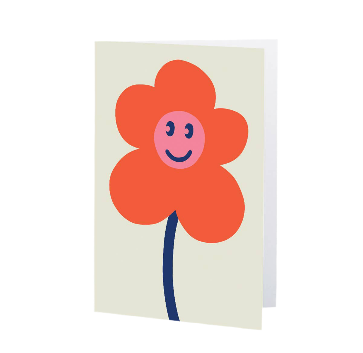 This art card boasts a friendly flower, drawn with bold shapes and a happy palette.