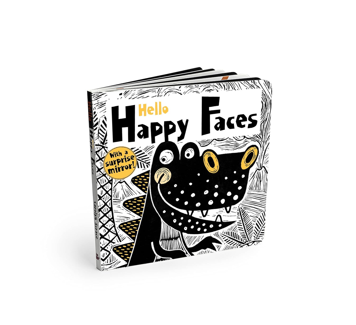 From smiling snowmen to giggling gators, Hello, Happy Faces is the perfect first baby book. A great early introduction to friendly faces for your baby, every lino-cut artwork and high contrast design is intentional for a baby’s developing eyesight to make visual connections with fun shapes in simple black and white.