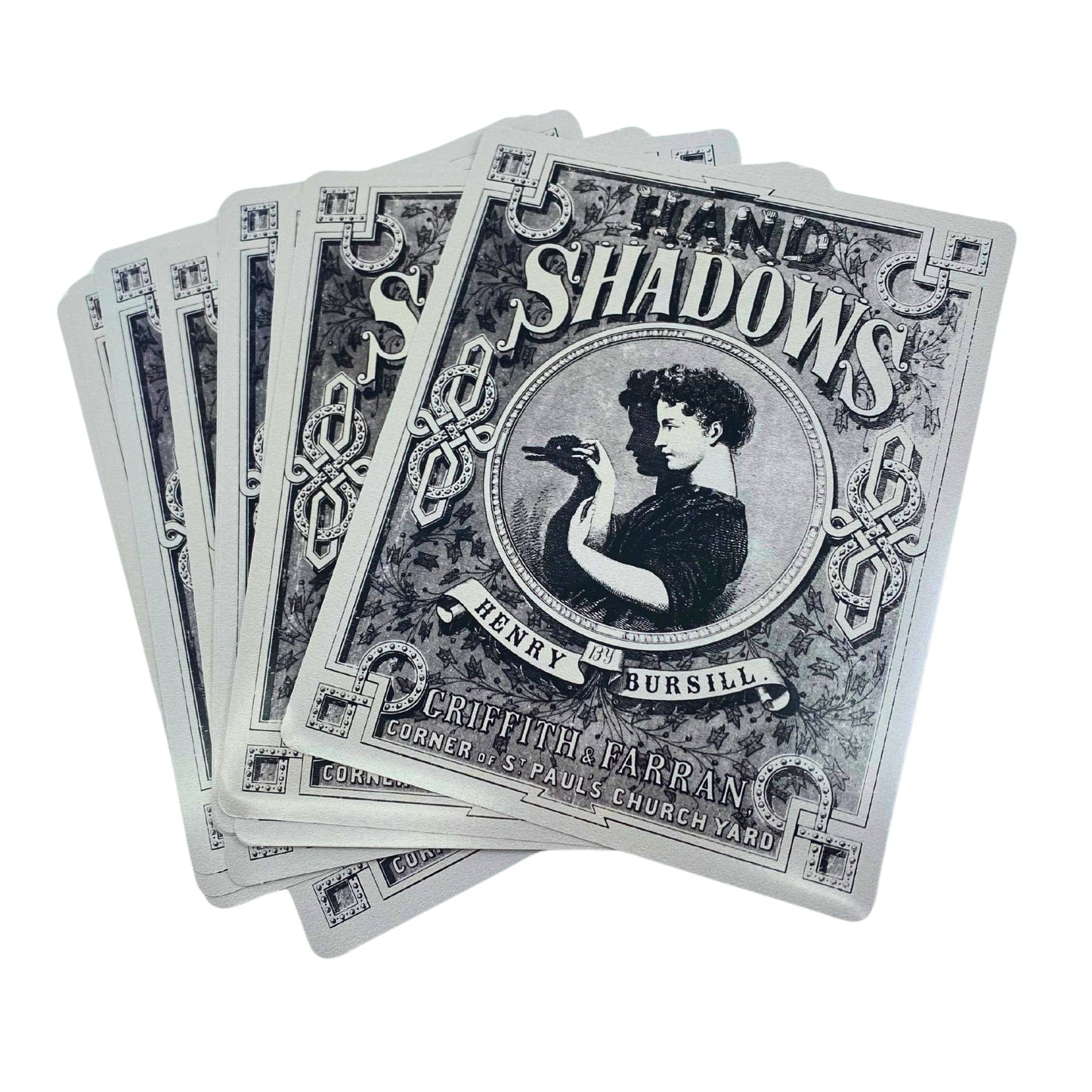 12 beautifully illustrated instructional cards taken from the 1859 best-selling book by Henry Bursill showing us how to throw highly amusing hand shadows upon a wall.