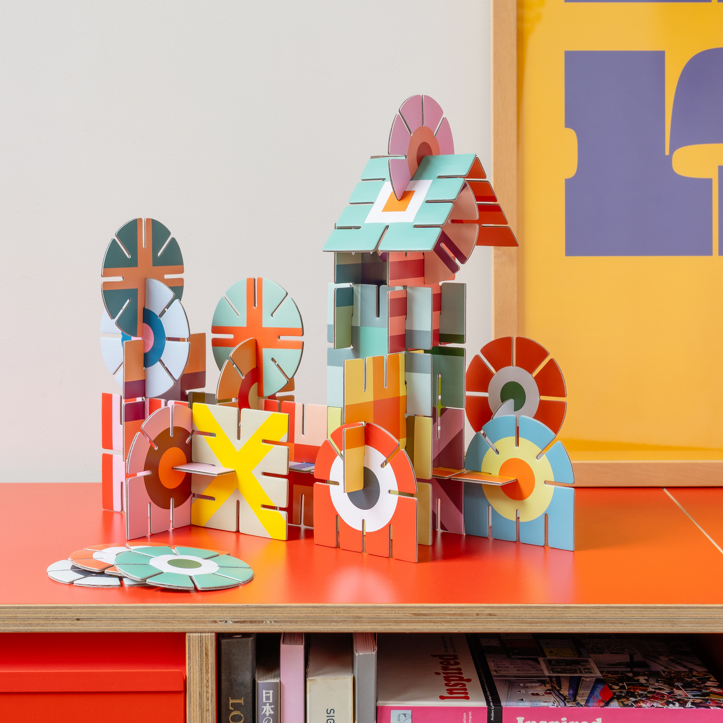 Graphic building card set for creativity without limits: Simply build straight away and use the colorful circles and squares to create ever new imaginative objects, buildings or small worlds.
