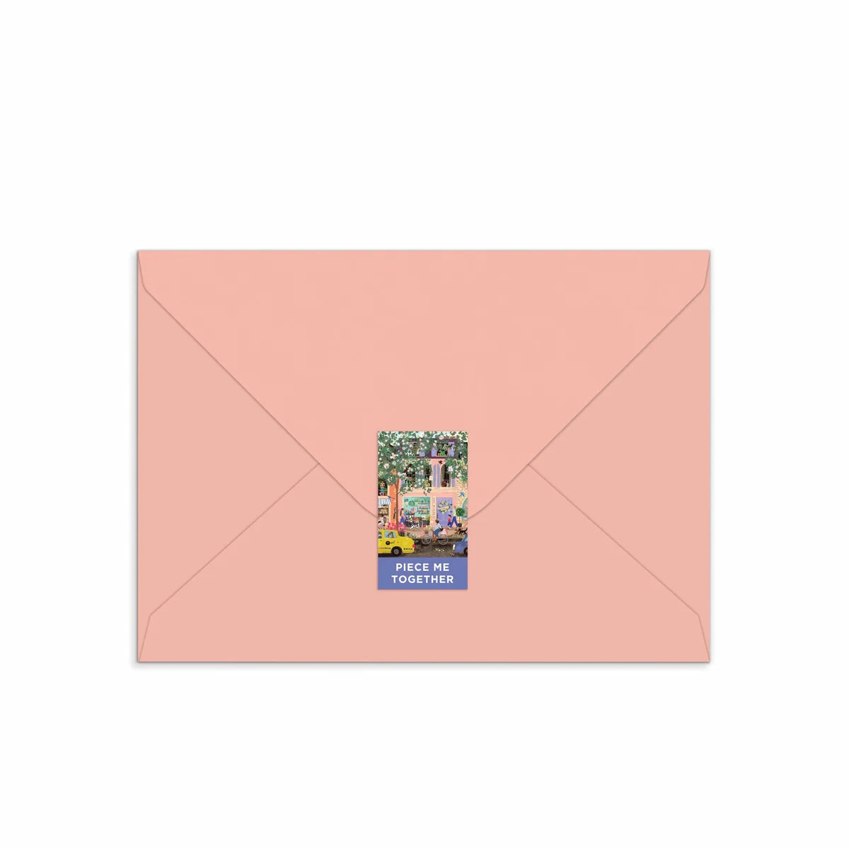 The Joy Laforme Spring Street Greeting Card Puzzle from Galison is a 60-piece postcard puzzle featuring a beautifully illustrated spring day in the city. Package comes with the puzzle fully assembled. Write the message on the back, break up the pieces, place in the envelope and mail. The perfect greeting card surprise to send to family and friends!