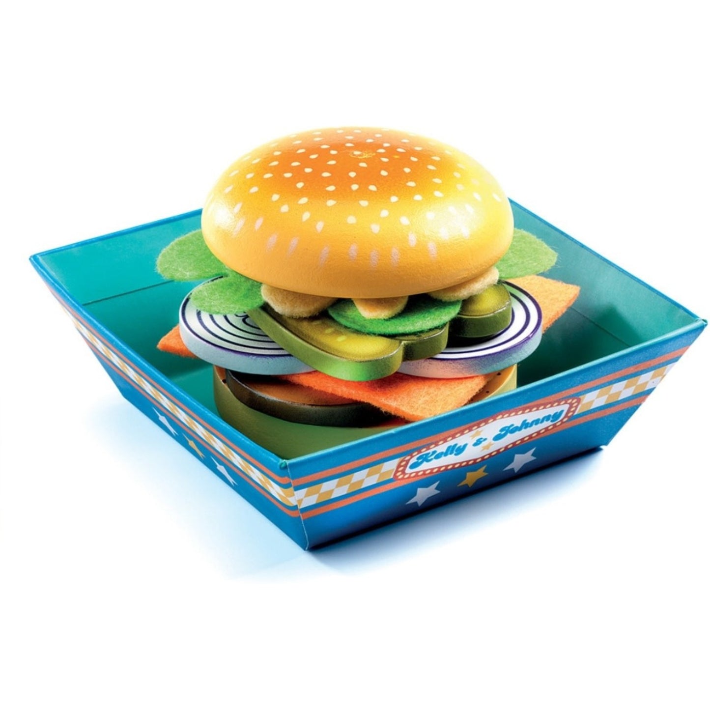 This wooden box contains all the accessories you need to make delicious burgers with all the fixins! Children make their own burgers or follow the suggestions on the menu.