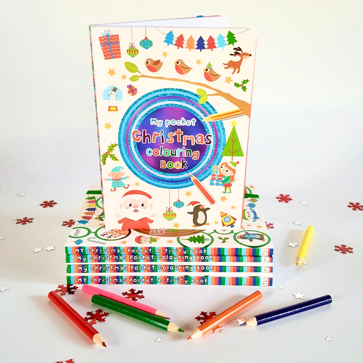 Keep the little ones entertained with these handy Christmas pocket activity and coloring books.