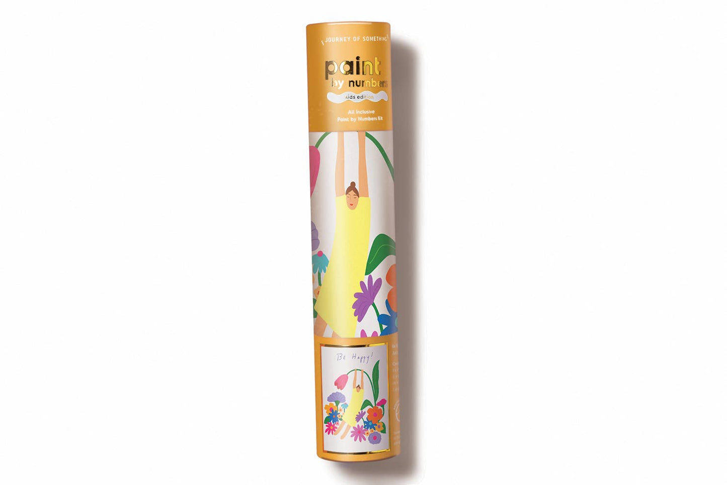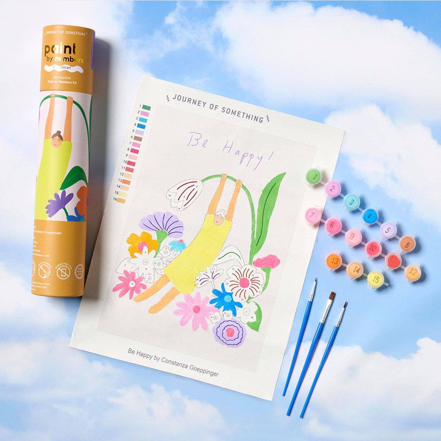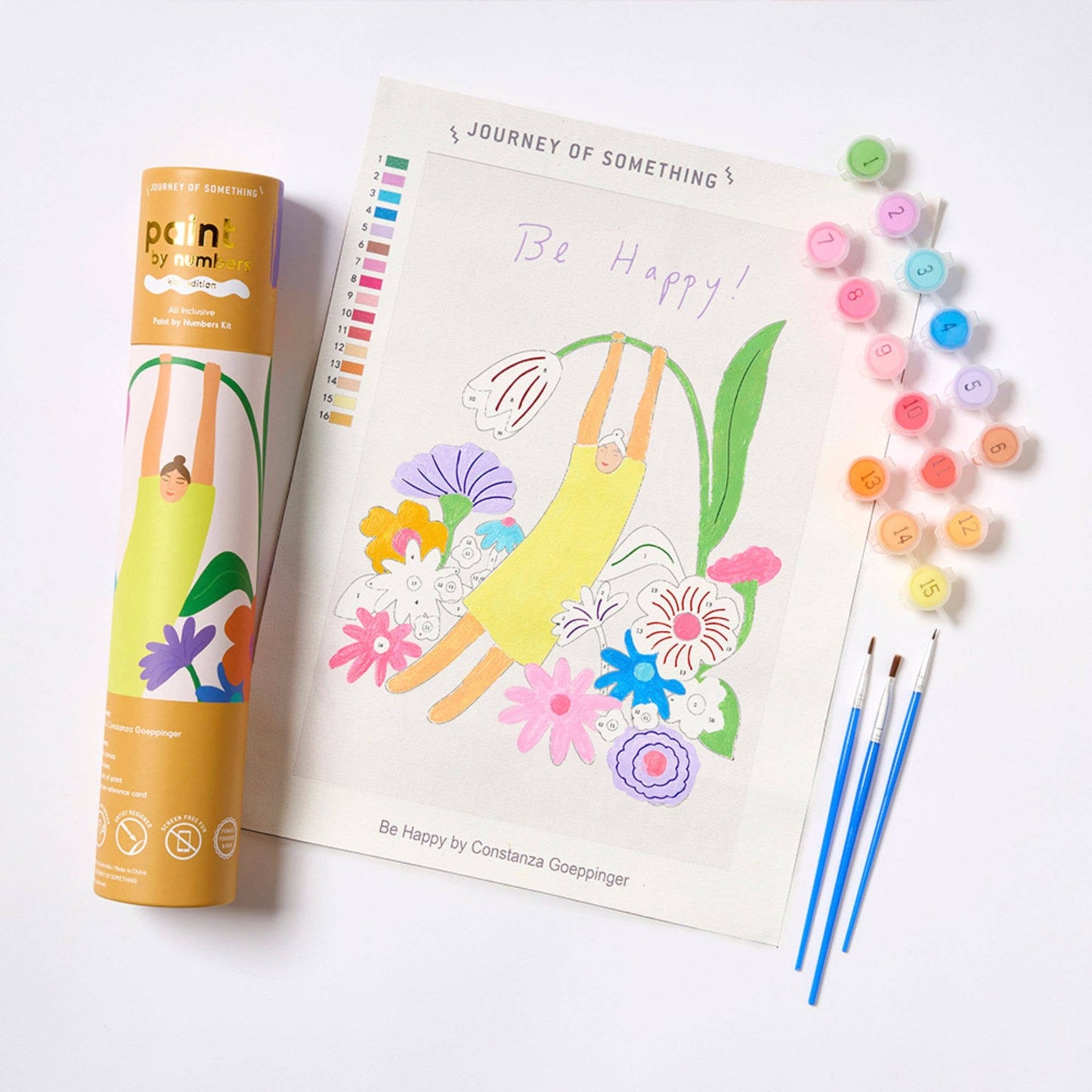Paint "Be Happy" - and be happy! The sweetest kids paint by numbers kit, that grownups might want to do too. It's so cute in fact that you might want to frame your creation when it's done.