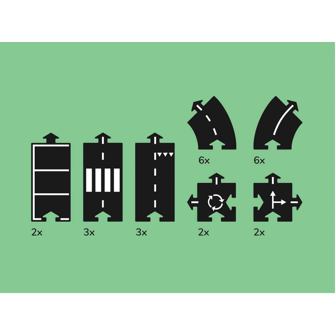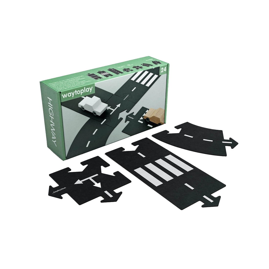 The Highway has twenty-four flexible road parts to lay-out a larger design road totaling 148 inches in length. The set includes straight, curved and crossed pieces with different road markings on both sides to offer you lots of variation. The high-grade, child-safe material is tough, unbreakable, and yet flexible so that obstacles can be taken and the roads can be laid out on almost any surface... indoors and out! This is one of our bestselling products. Cars are not included in the sets.