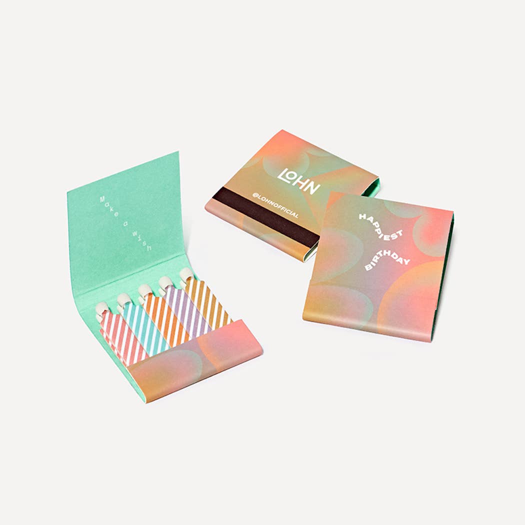 This matchbook holds 10 matchsticks that look just like birthday candles!
