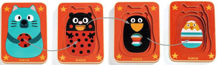 A pretty multi-layer wooden puzzle of discovery from Djeco.