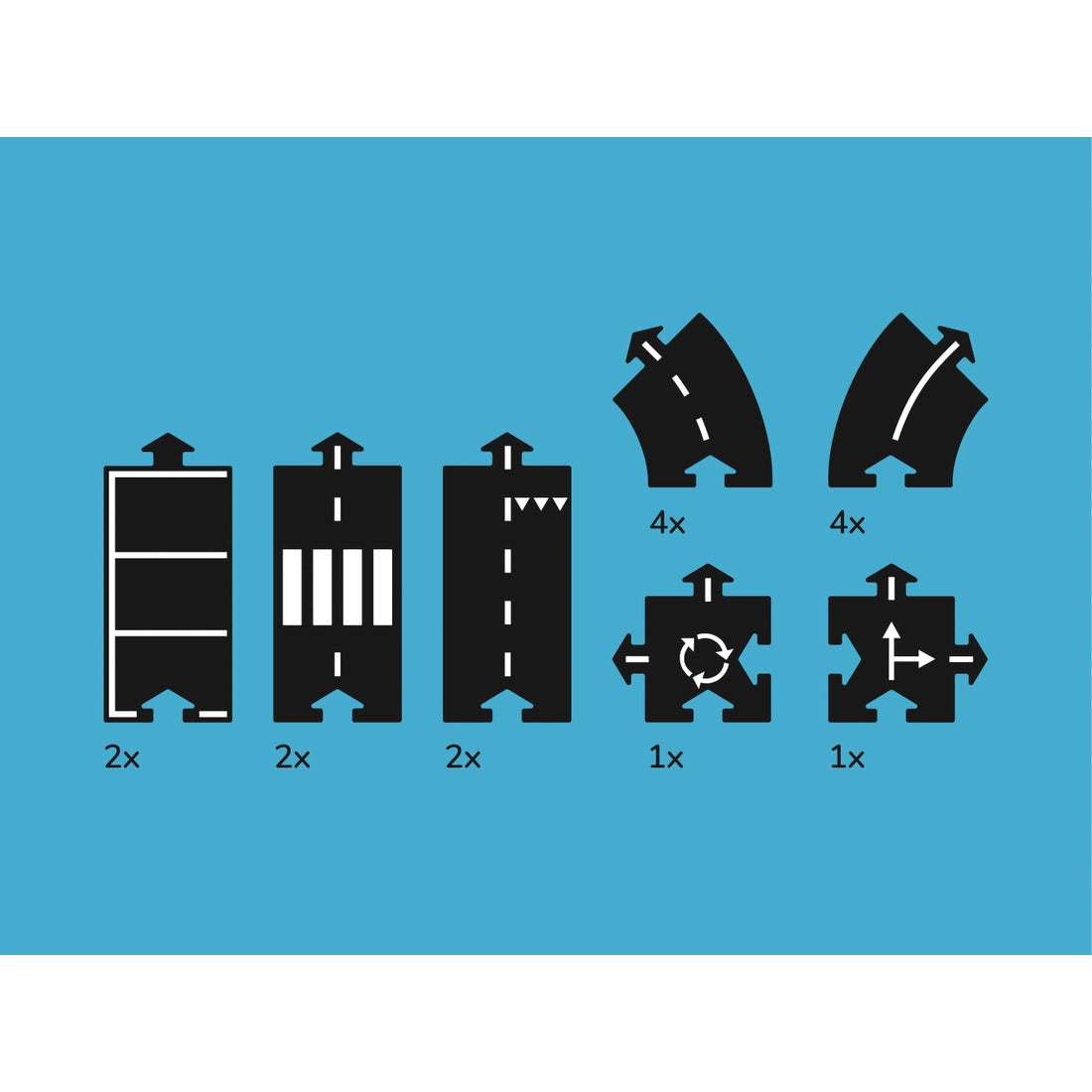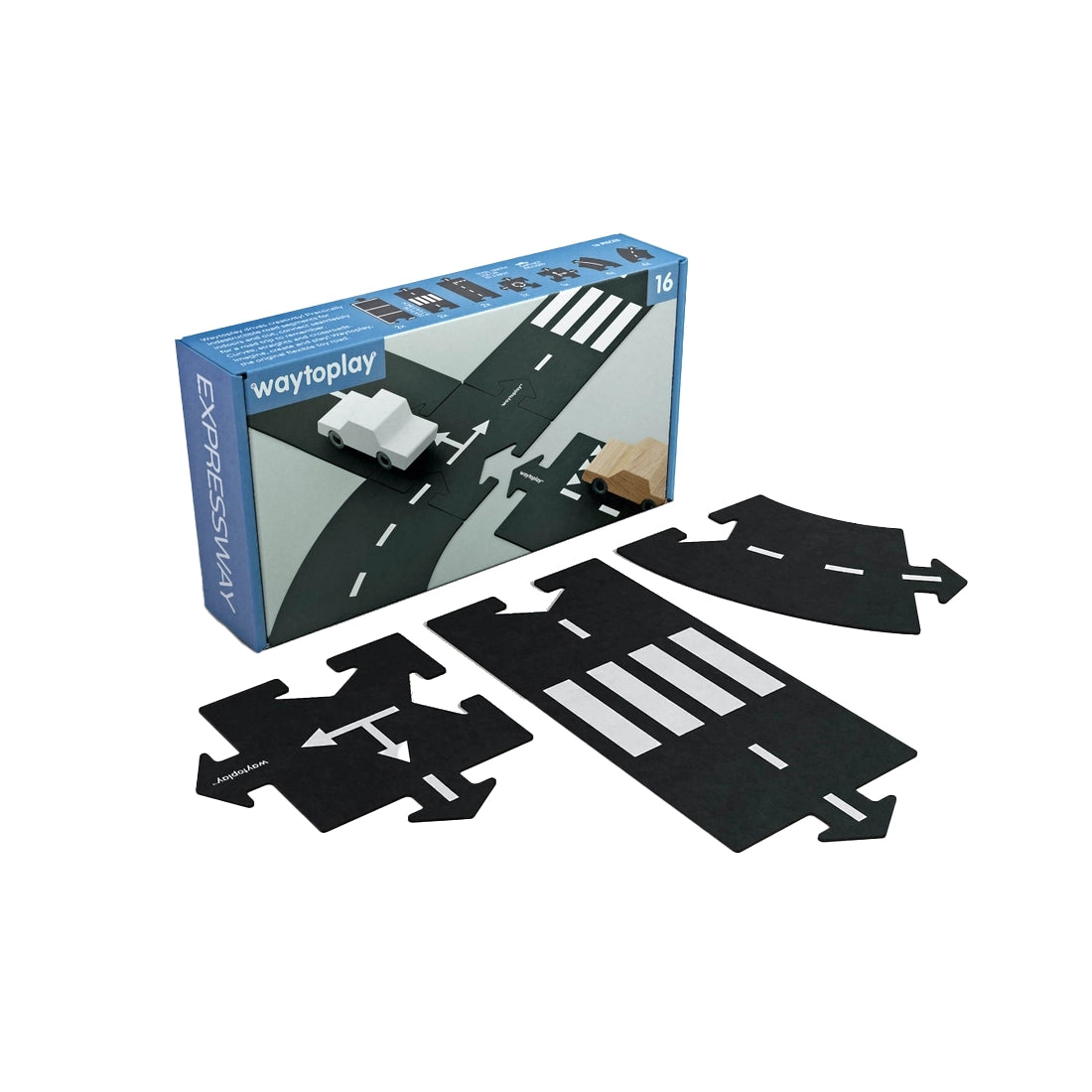 The Expressway set contains sixteen road parts to lay out a nice flexible road over 101 inches in length. The set includes straight, curved, and crossed pieces with different road markings on both sides to offer lots of variation in design of the road. The high grade, child safe material is tough, unbreakable and yet flexible so that obstacles can be taken and the roads can be laid out on almost any surface... indoors and out! This is one of our bestselling products. Cars are not included in the sets.