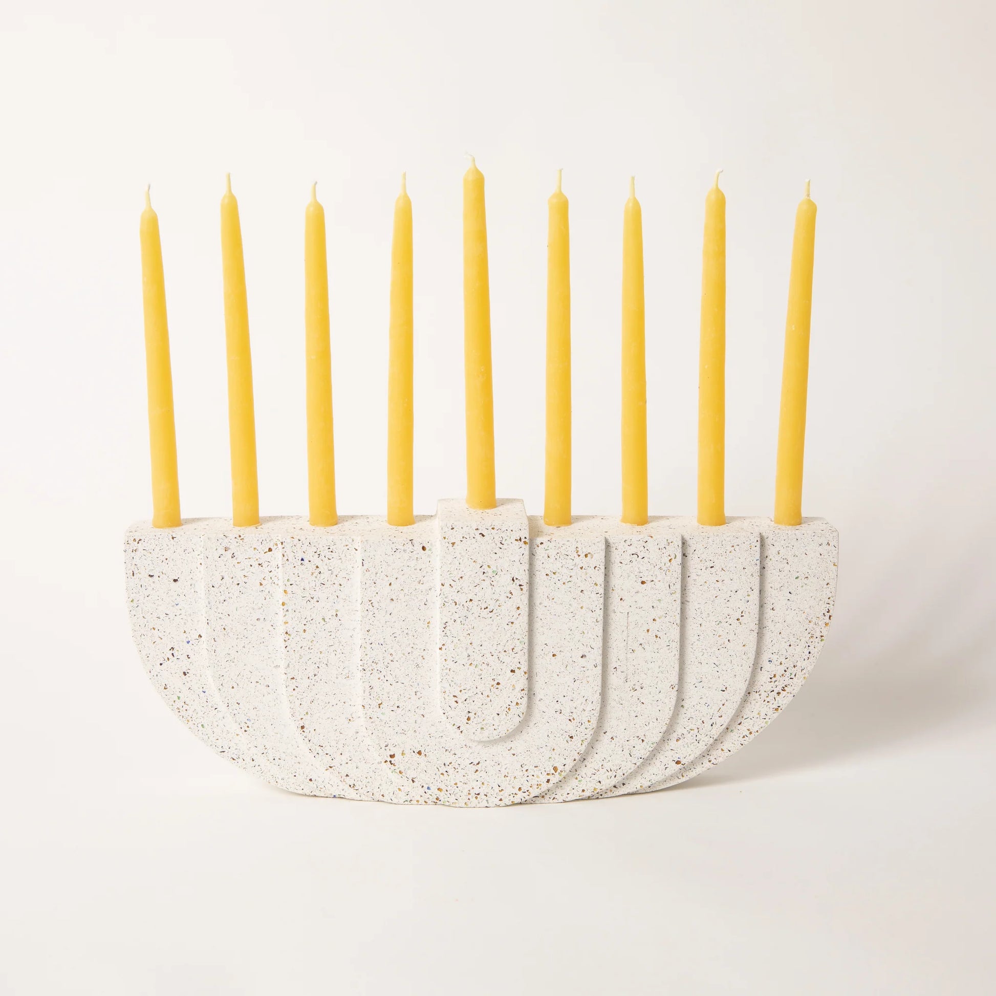 Pretti Cool’s concrete menorah is individually hand cast from custom made rubber molds. Colors are integrally mixed into the concrete and results in each piece being unique.