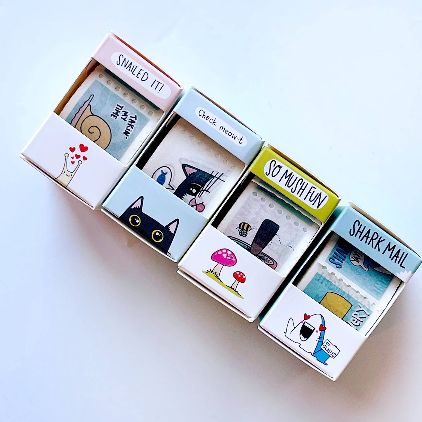 10 different image repeat and packaged in a delightful illustrated box.