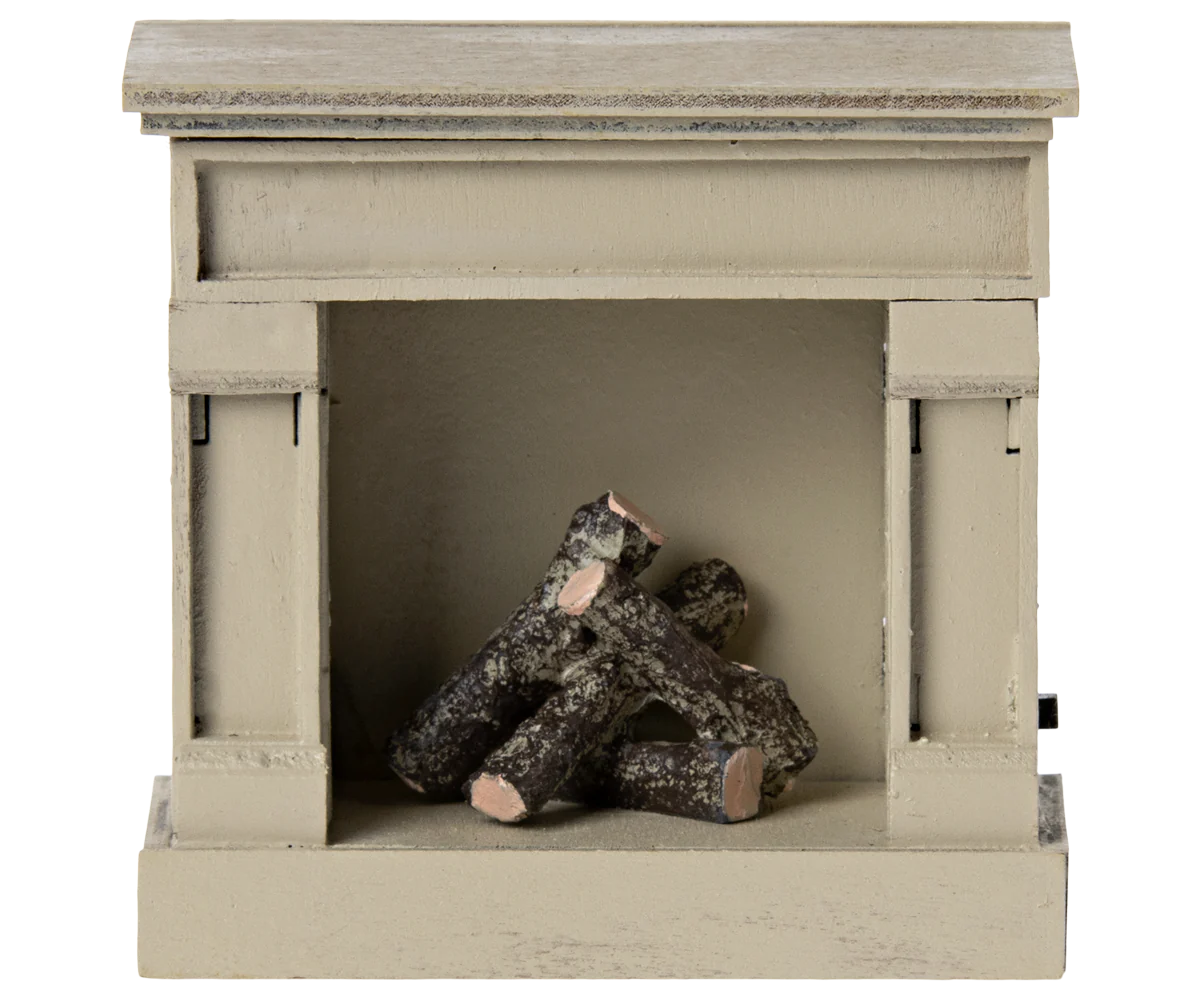 Introducing our fireplace design! This adorable addition to our castle collection is so cozy with its flickering 'fire' and vintage painted look. Help your mice stay warm and relax by our vintage-style fireplace. It includes a switch to light up the fire, and has a place to change the batteries.
