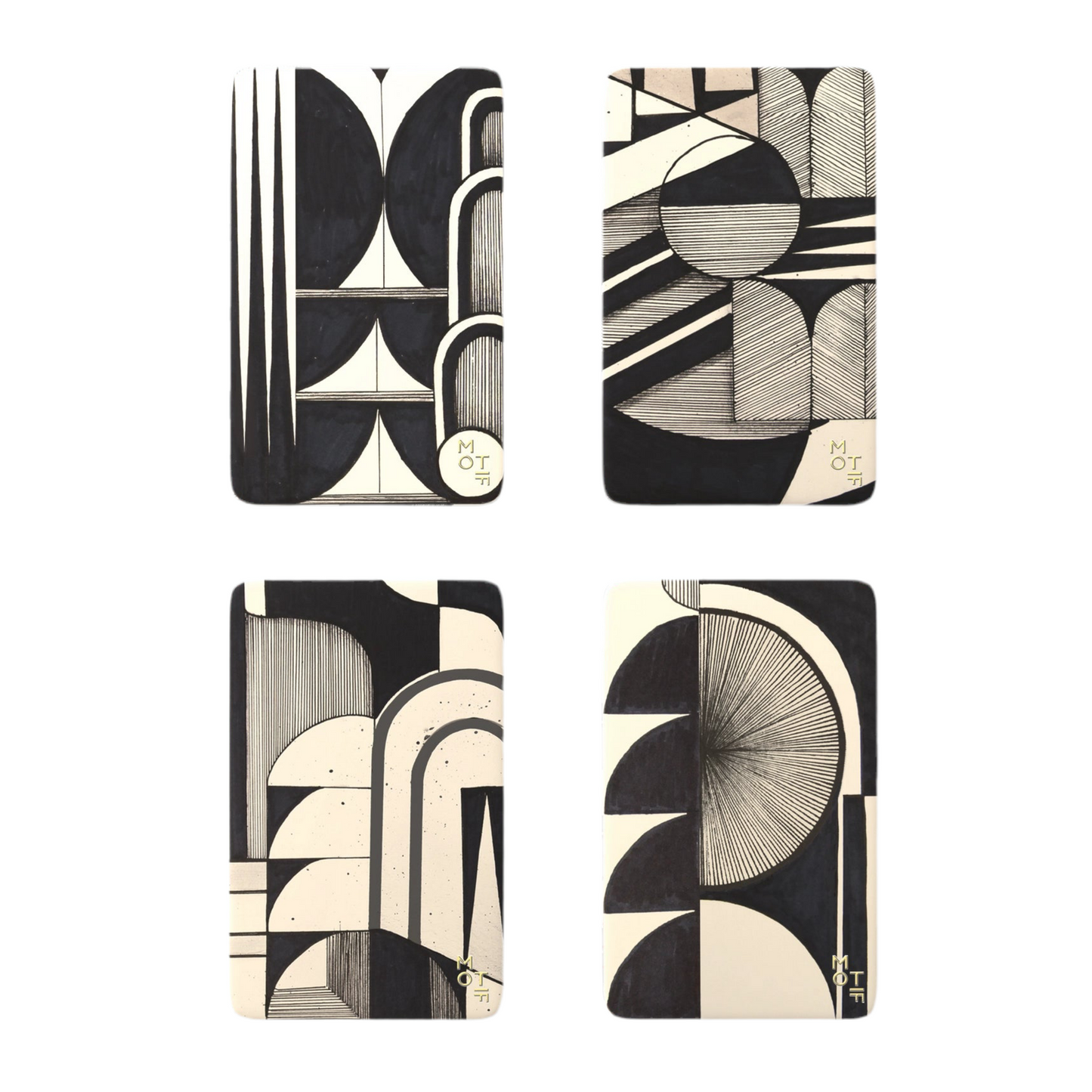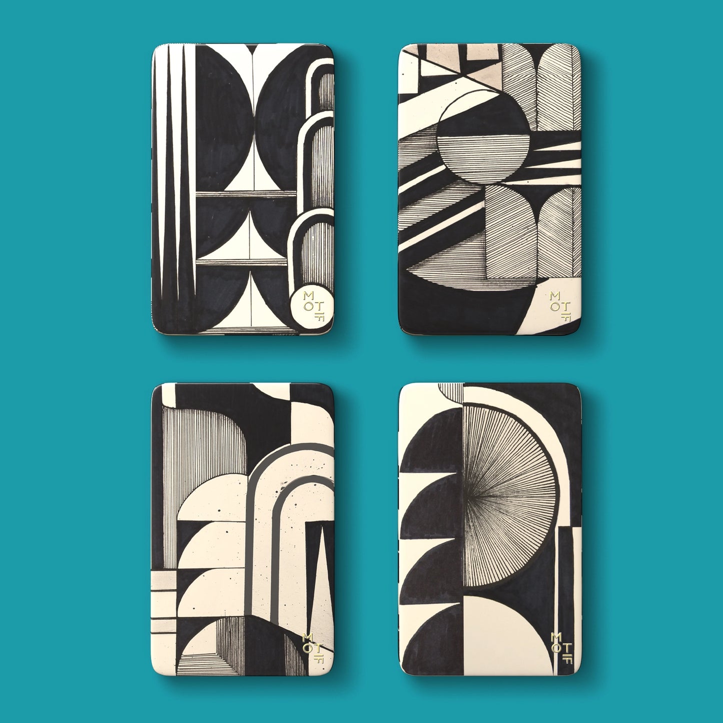 Bold and artistic, these designs mix fine lines and striking shapes into intriguing tonal compositions.