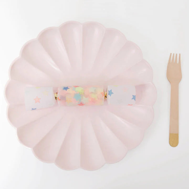Make sure your celebration goes off with a bang by laying your table with these brilliant confetti crackers! Each one is elegantly decorated with beautiful multicolored glitter stars and filled with a temporary tattoo, a paper hat, a joke and plenty of confetti!