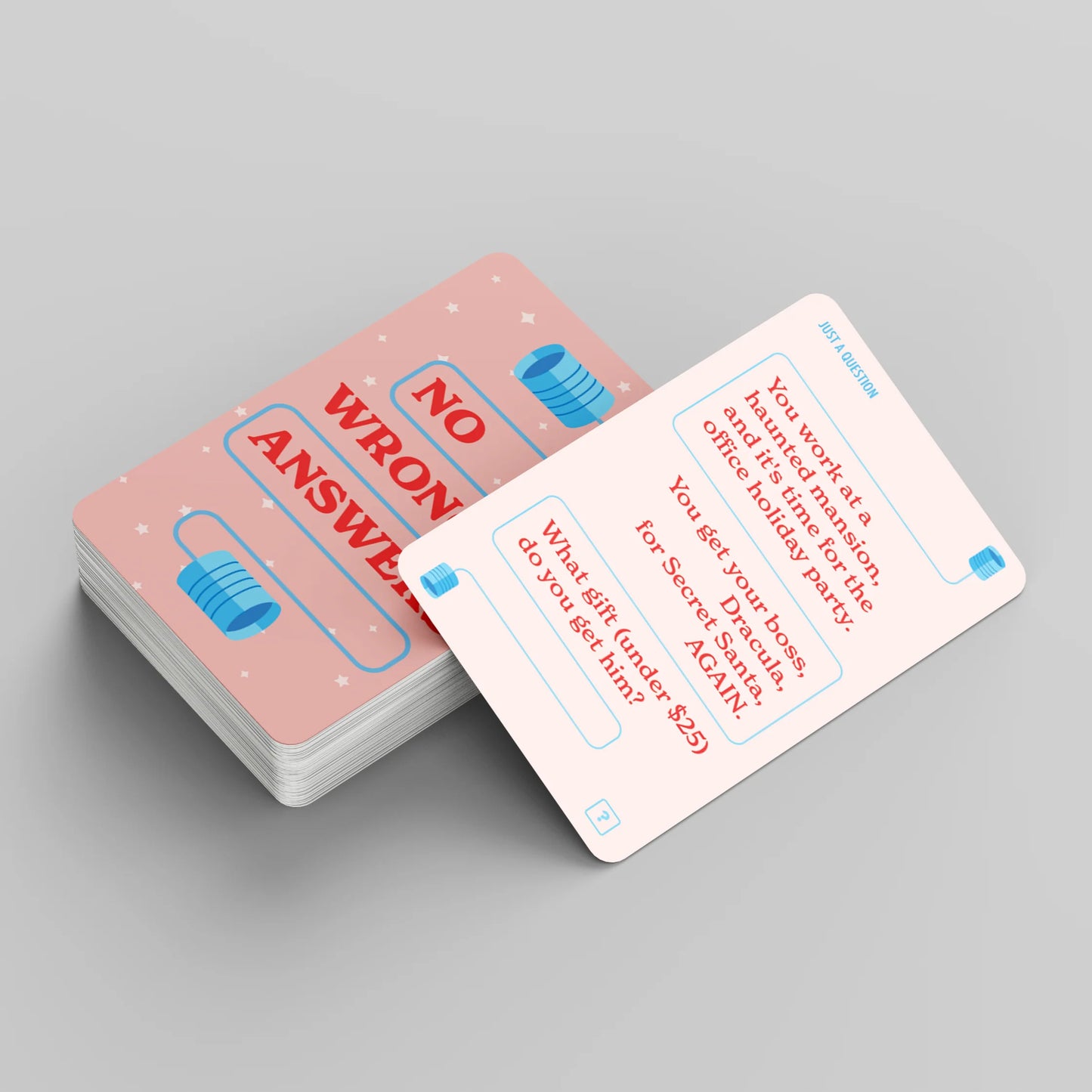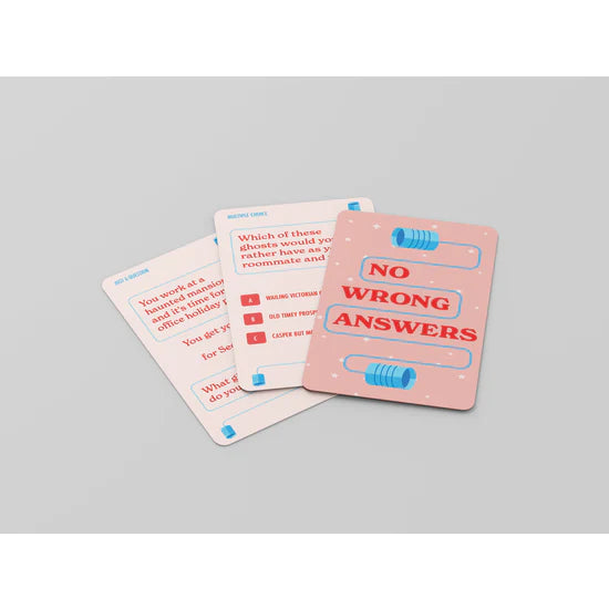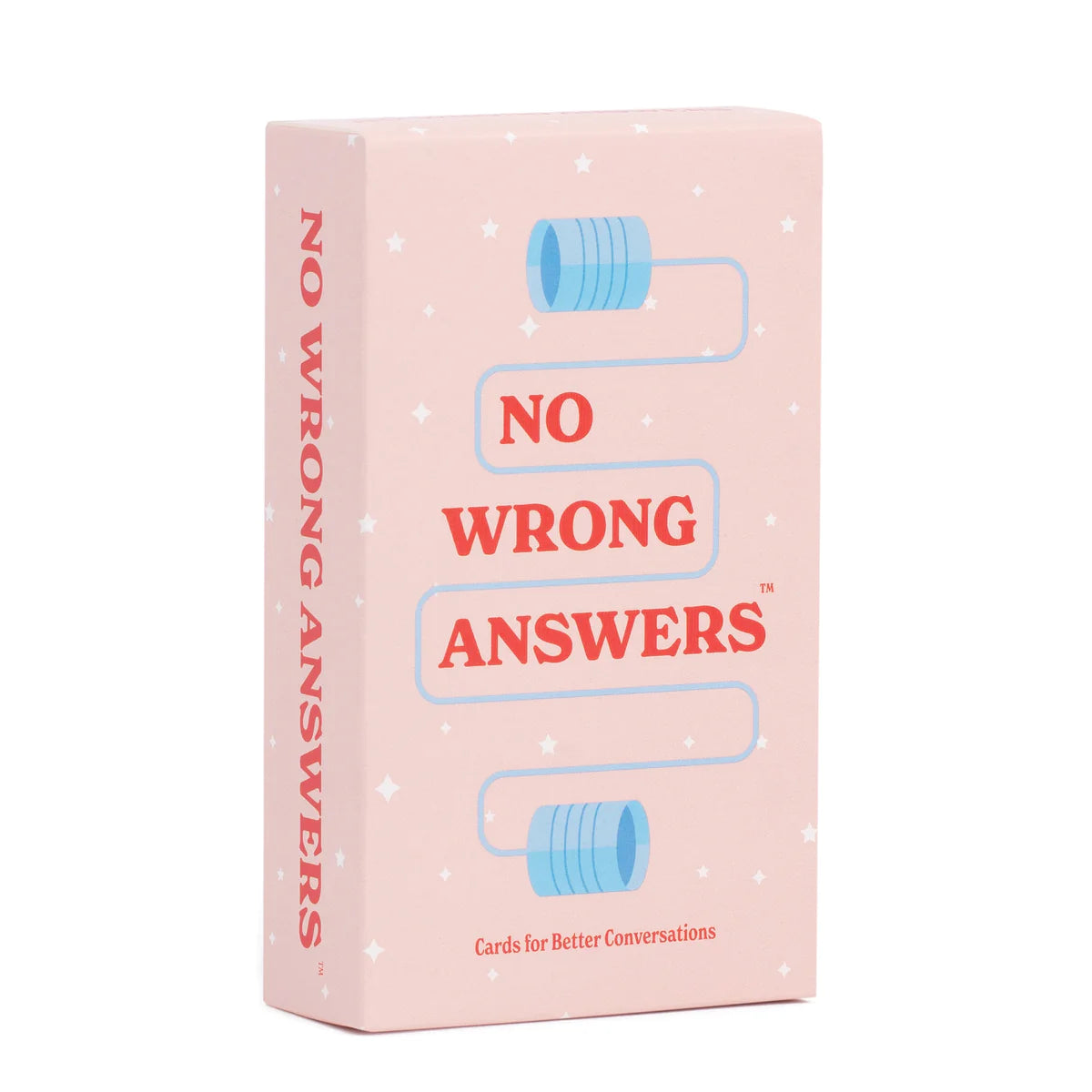 The best-selling original No Wrong Answers conversation cards single-handedly put an end to awkward small talk everywhere. That’s it! It’s over! You’re welcome, folks! Only fun conversations and laughter from here on out.