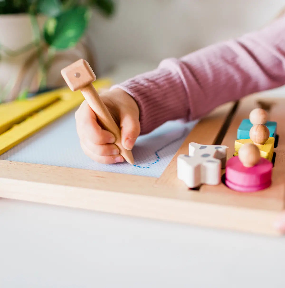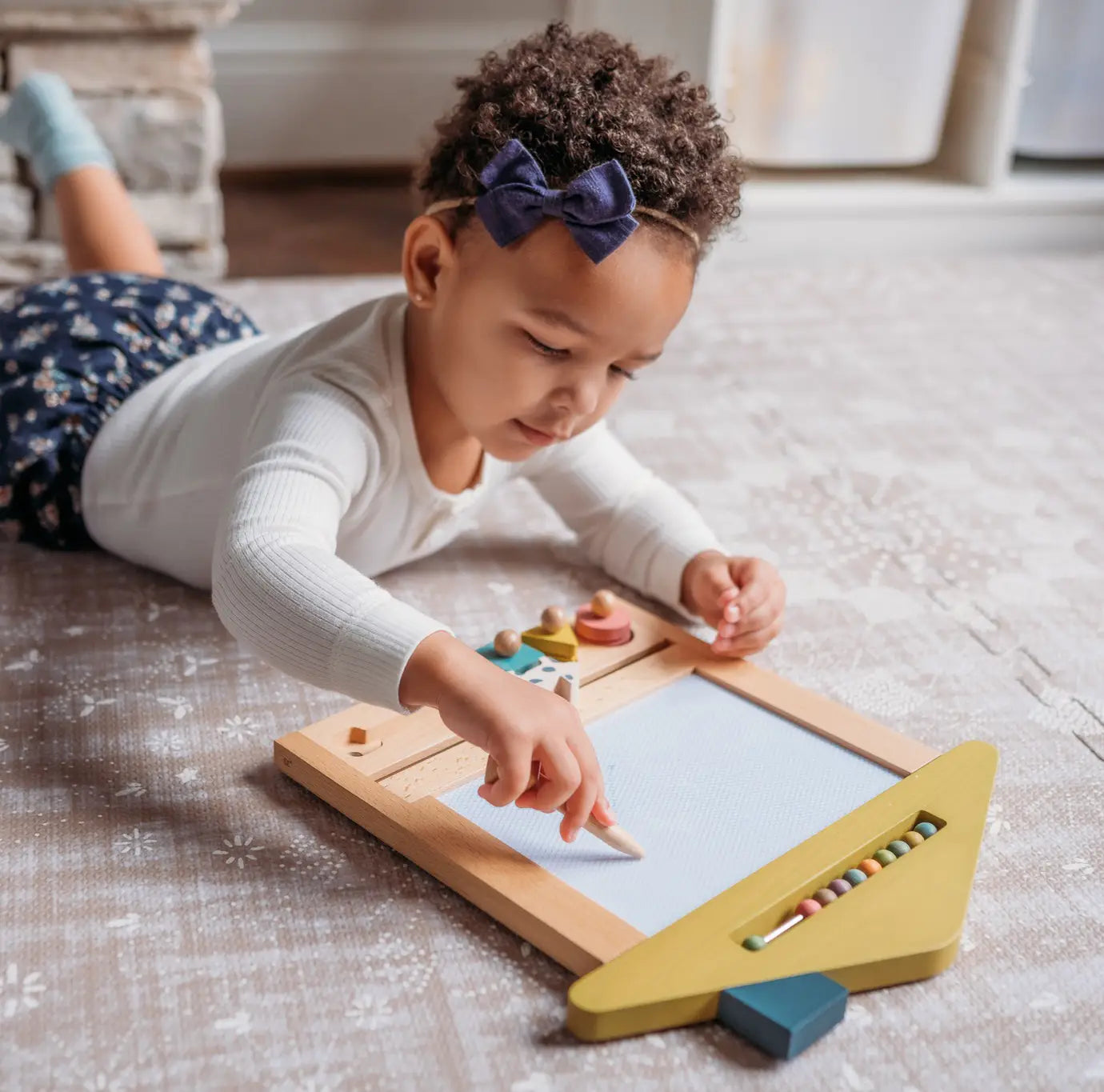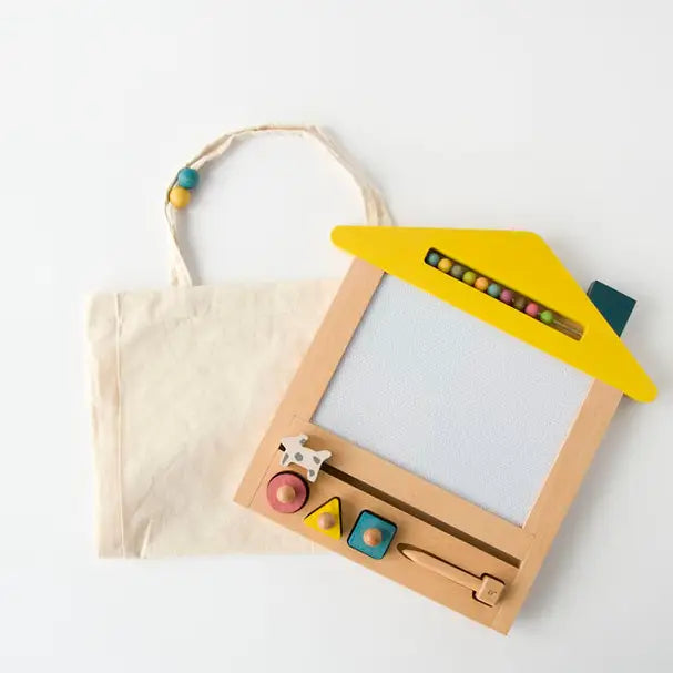 A beautifully hand-crafted wooden magnetic drawing board that's sure to become a playroom favorite.