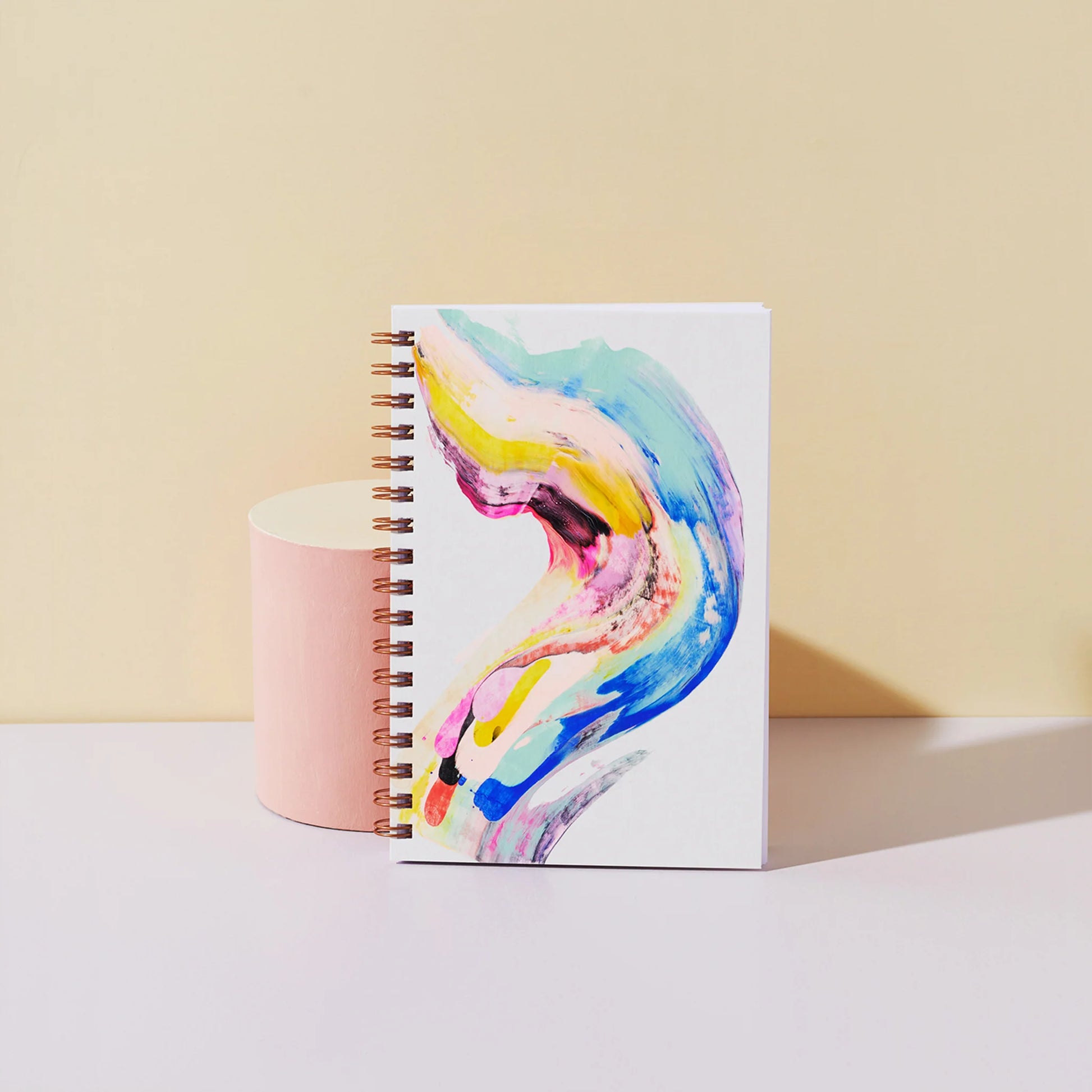 Hand-painted pulpboard covers with high-quality wire binding. Both covers are painted by hand and foil stamped on one of our antique foil presses, making each notebook completely one-of-a-kind.