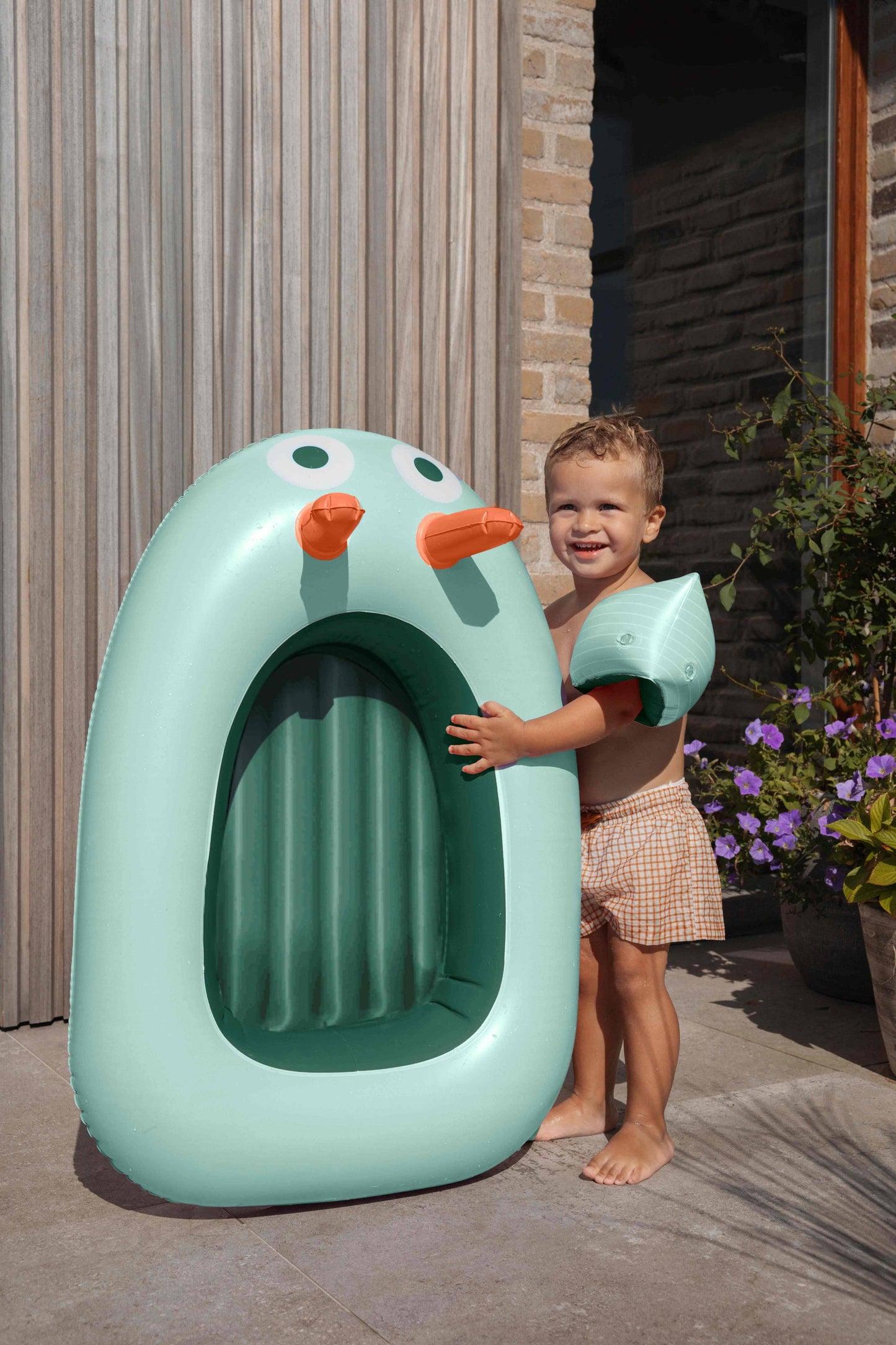 Crafted from durable, non-toxic vinyl, this adorable boat is designed with kids in mind, offering a comfortable and secure ride in both water and dry land play.