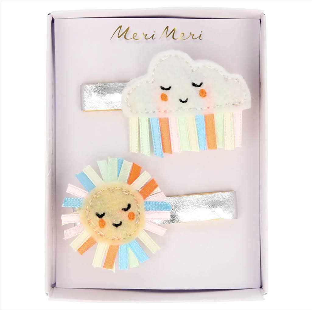 Let your hair look amazing no matter what the weather. These fabulous colorful 3D sun and cloud clips are made with soft felt, leatherette and satin ribbons, so look and feel amazing.