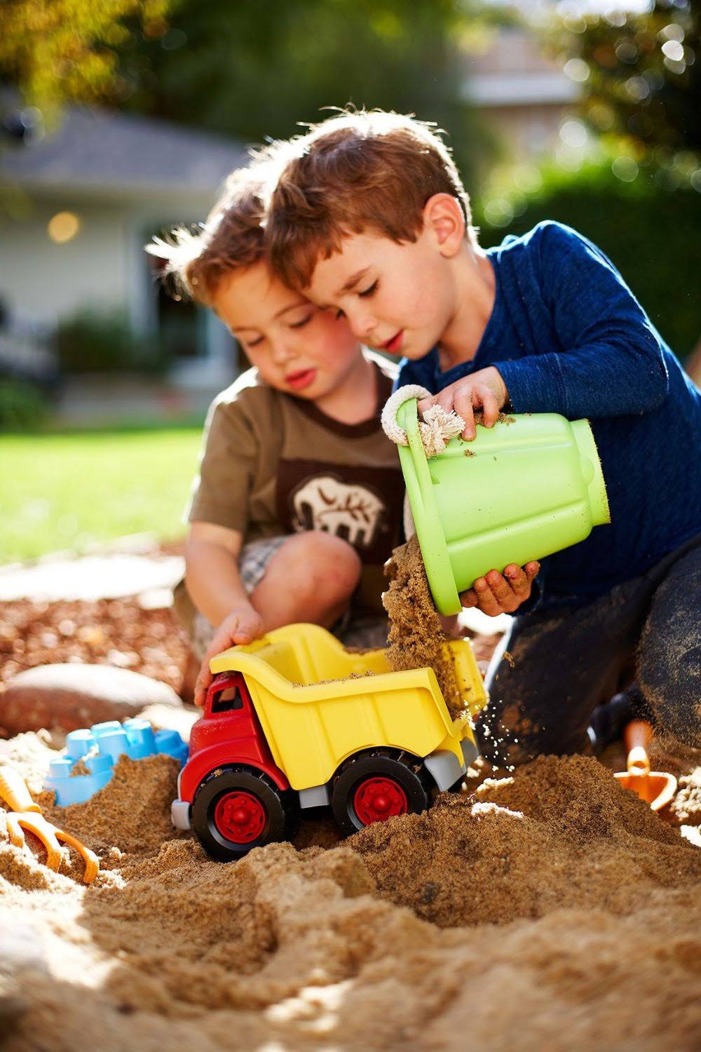 Build a castle. Dig for buried treasure. No matter how ambitious the project, the world's most eco-groovy sand play set always leaves a light footprint. The Green Toys Sand Play Set is made from 100% recycled plastic and can be carried to the park or beach with its US-made 100% cotton rope. This 4-piece Sand Set comes with a bucket, shovel, rake, and sand castle mold.