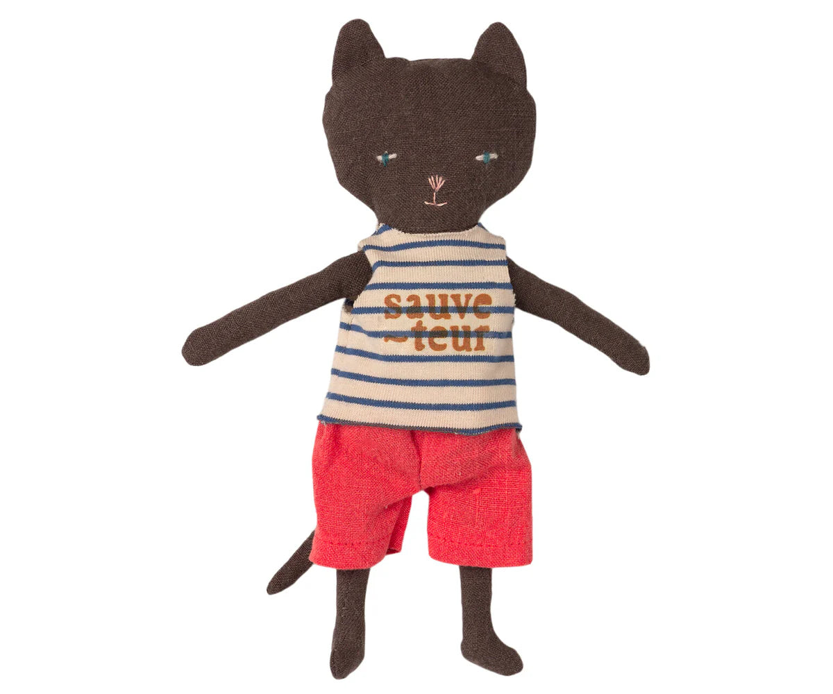 Vacation time! All popular beaches have their own lifeguard. This cat is watching over all the swimmers. In the nighttime, the tower can change into a lighthouse that guides ships in the right direction.