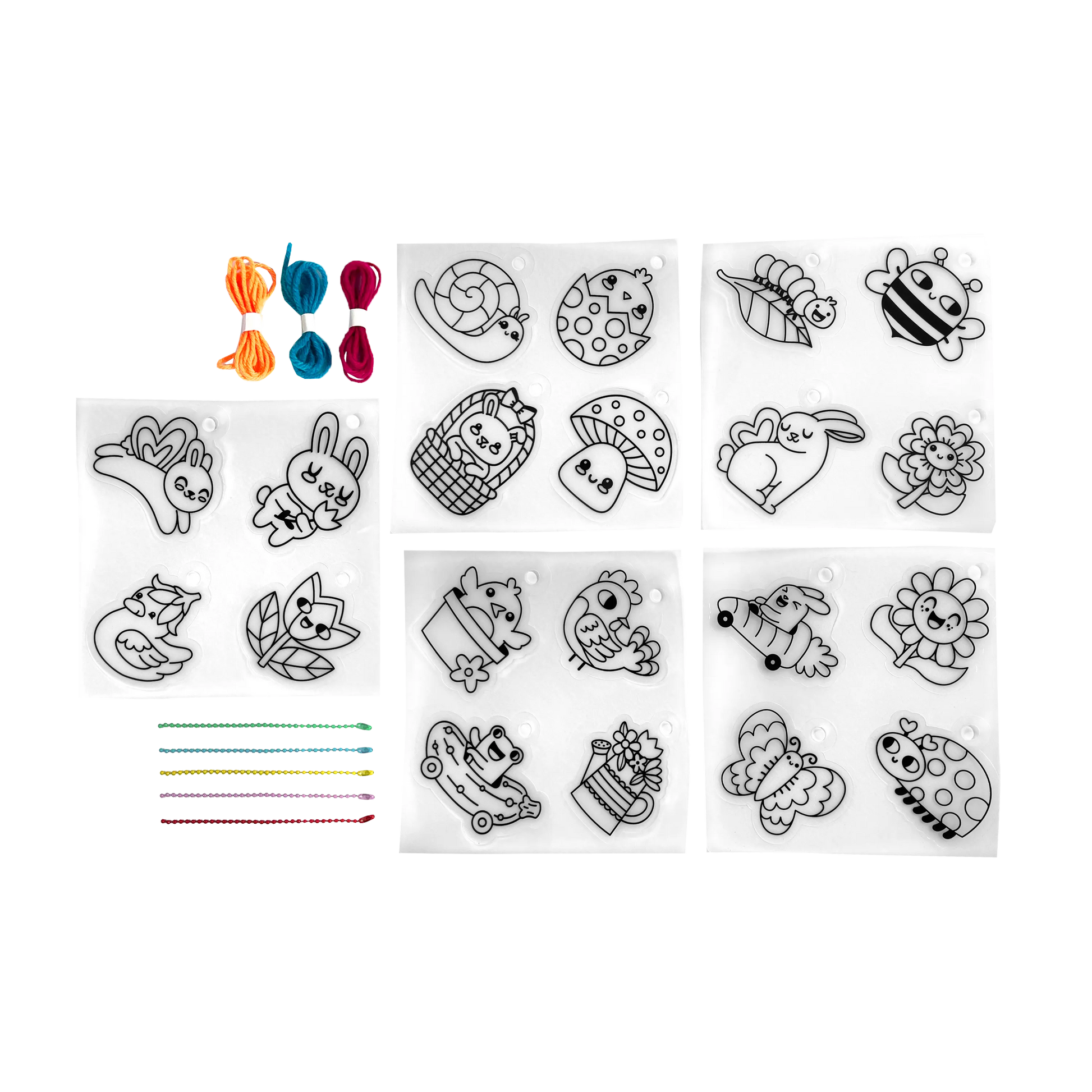 Perfect for making bracelets, keychains, or backpack charms. Pre-cut designs are ready to color, bake, and shrink.