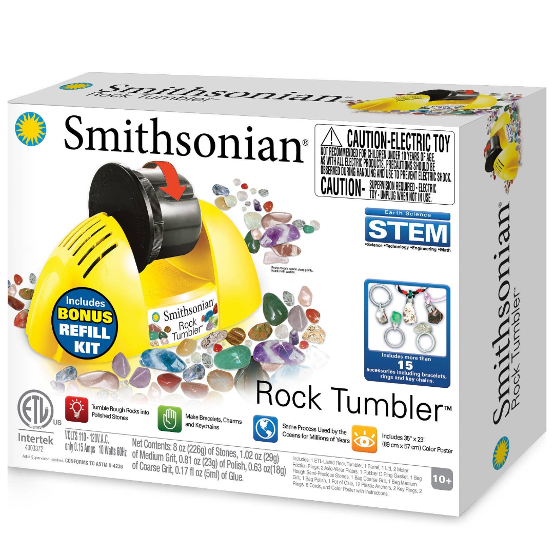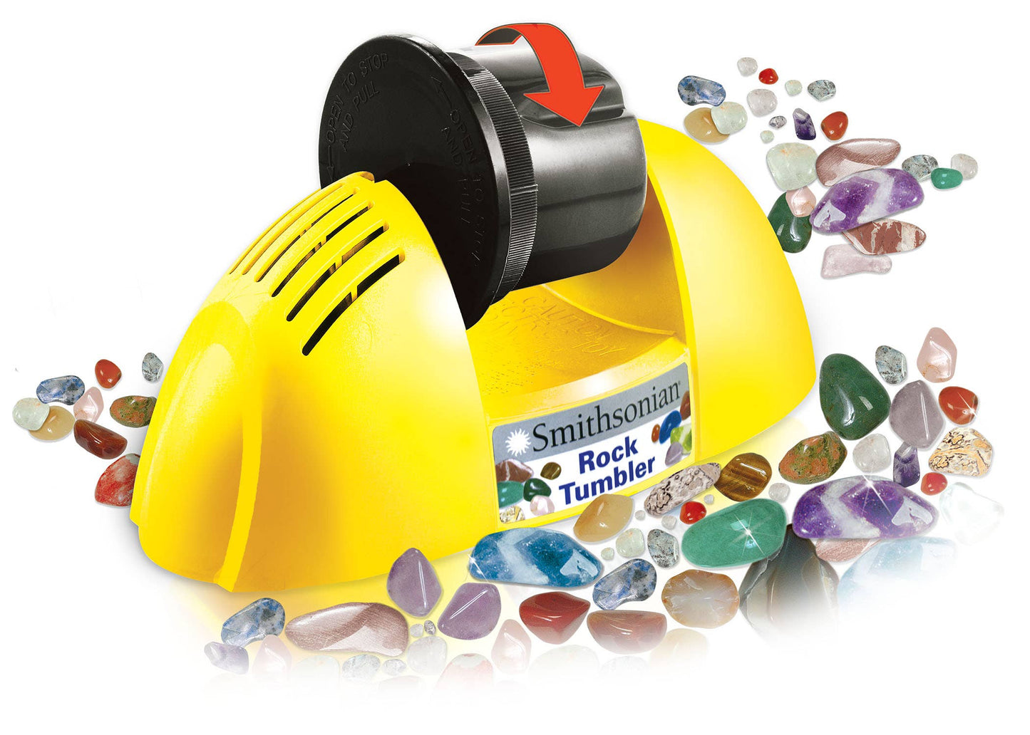 Begin by tumbling the included rocks in a barrel with water and grit, then repeat this cycle using progressively finer grits. In just weeks, the Smithsonian Rock Tumbler mimics the process that takes oceans thousands of years!