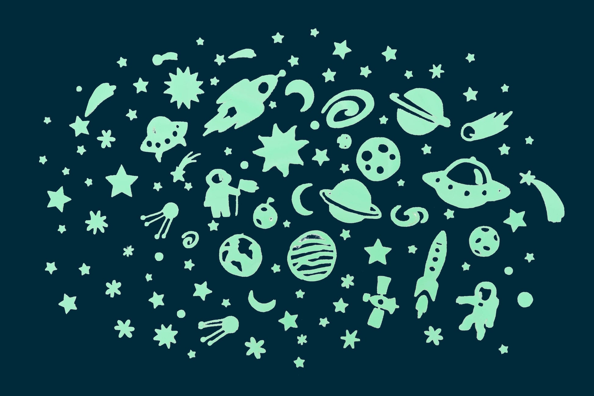 Super bright eco-friendly, glow-in-the-dark stickers for walls and ceilings!